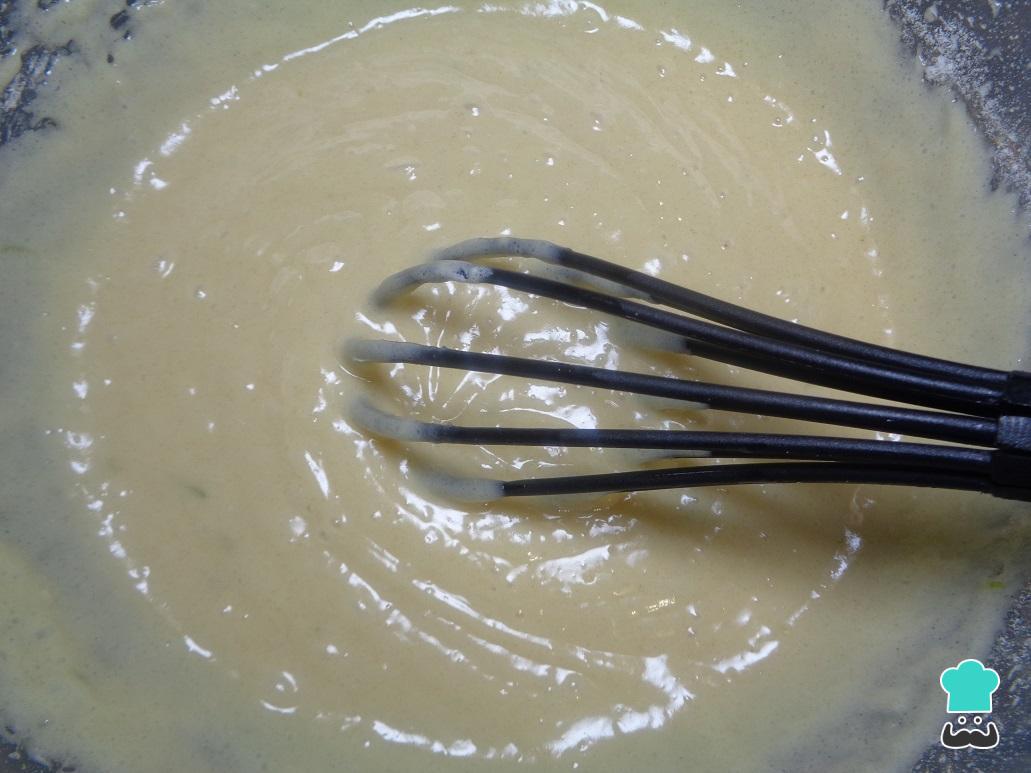 Com todos os ingredientes na tigela, volte a bater tudo com a ajuda de um fouet ou de uma batedeira até obter uma mistura homogênea e espessa.