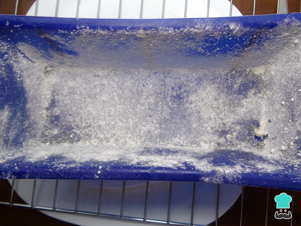 Unte a forma do bolo com um pouco de manteiga e adicione um pouco de farinha para enfarinhar completamente.