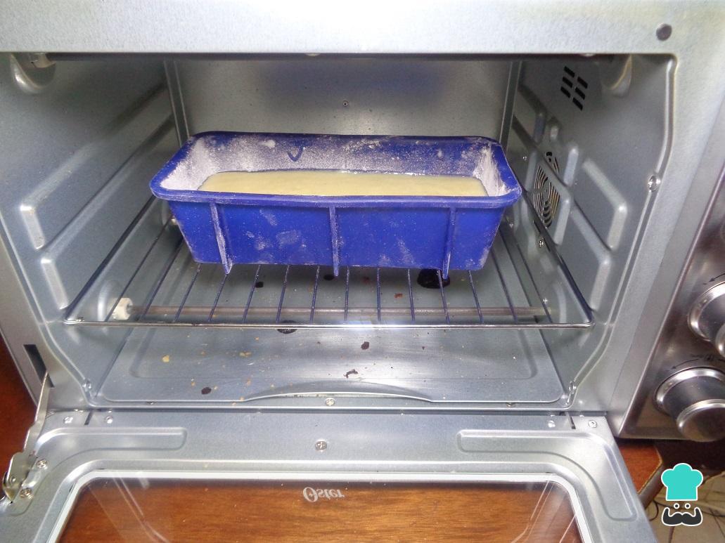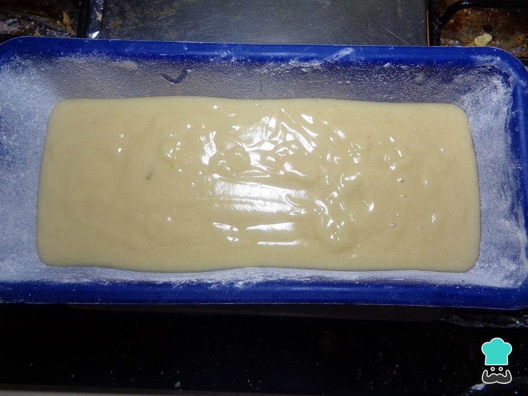 Depois de preparar a forma, adicione a mistura do bolo de limão diet.