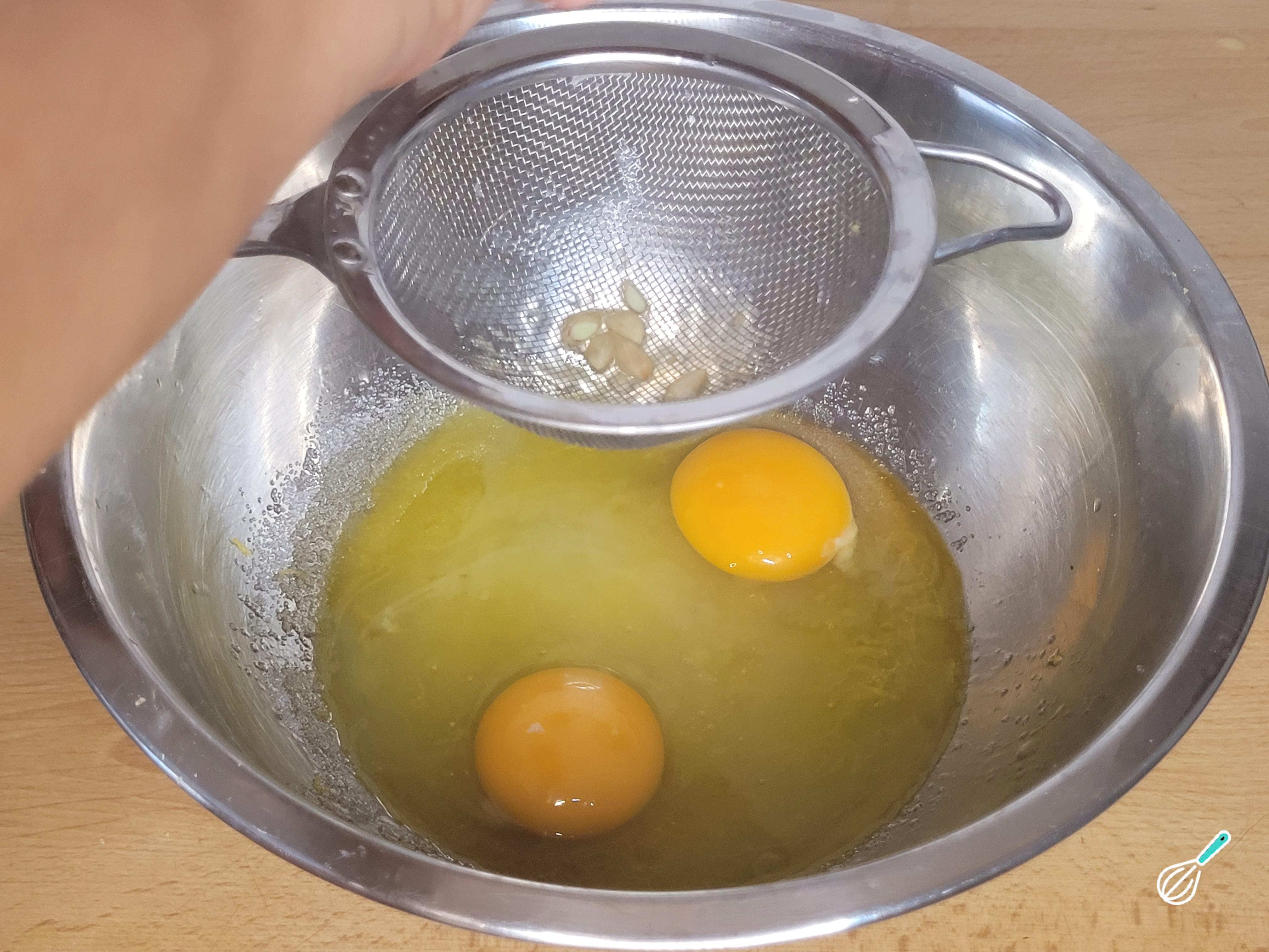 Misture os ovos, o extrato de baunilha e o suco de limão. É bom peneirar o suco porque se por acaso alguma sementinha cair na massa, pode acabar amargando.
