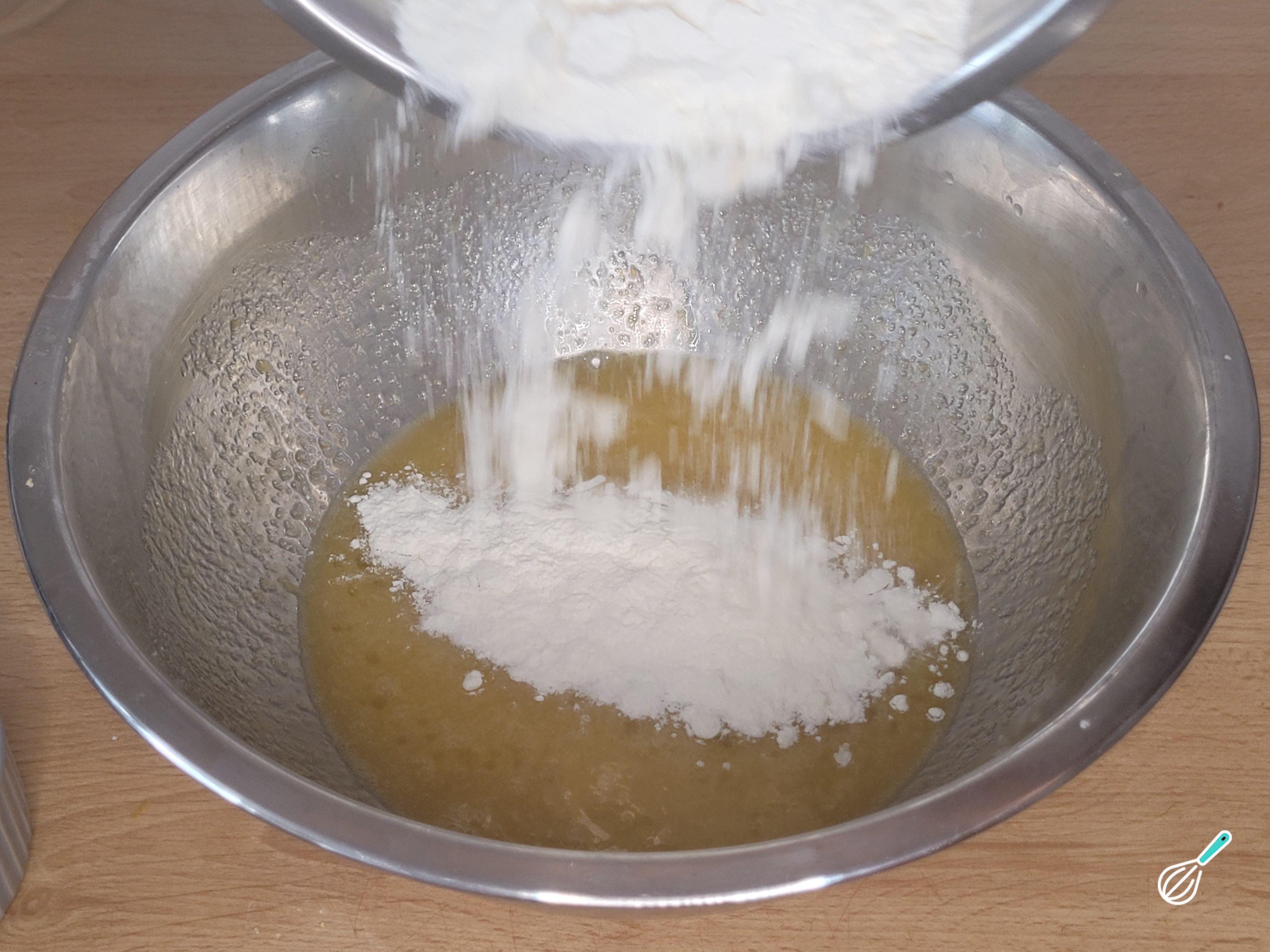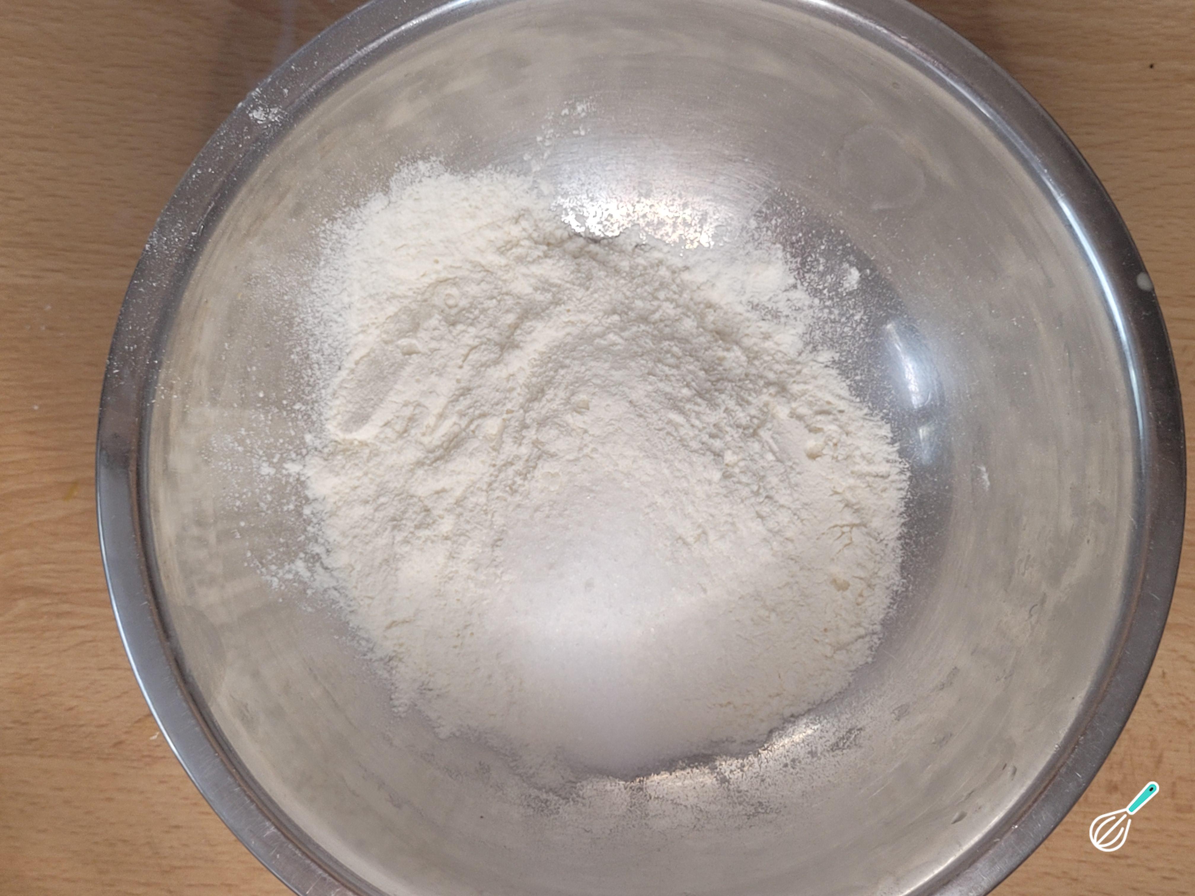 Em uma tigela separada, misture a farinha, o fermento e o sal.