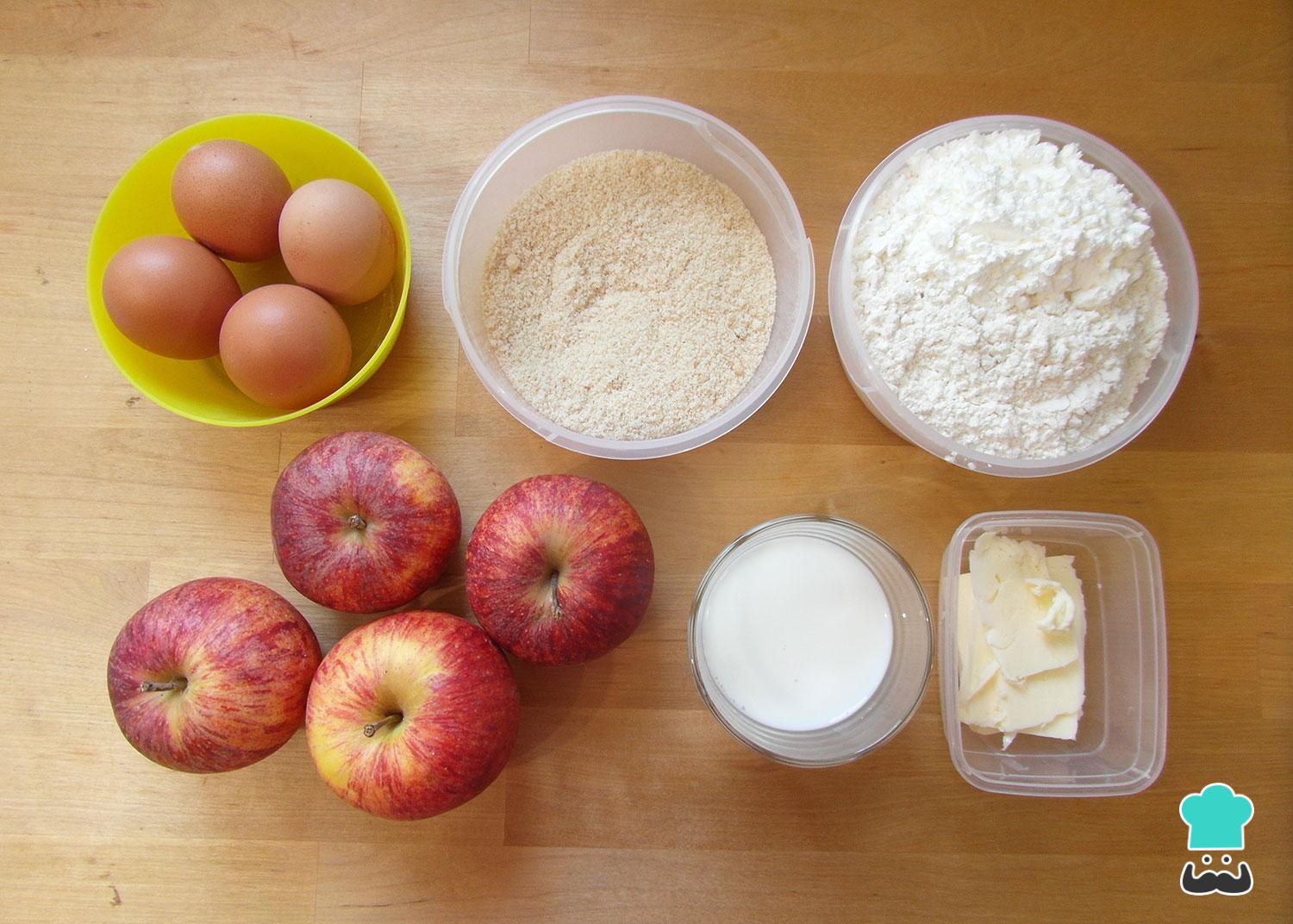 Comece por reunir os ingredientes. Dependendo do tamanho das maçãs poderá não ser necessário usar todas, nessa receita acabei usando apenas 3.