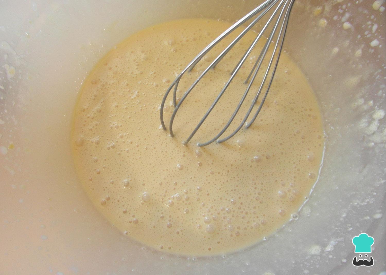 Bata muito bem os ovos com o açúcar até virar um creme suave e de tom claro.