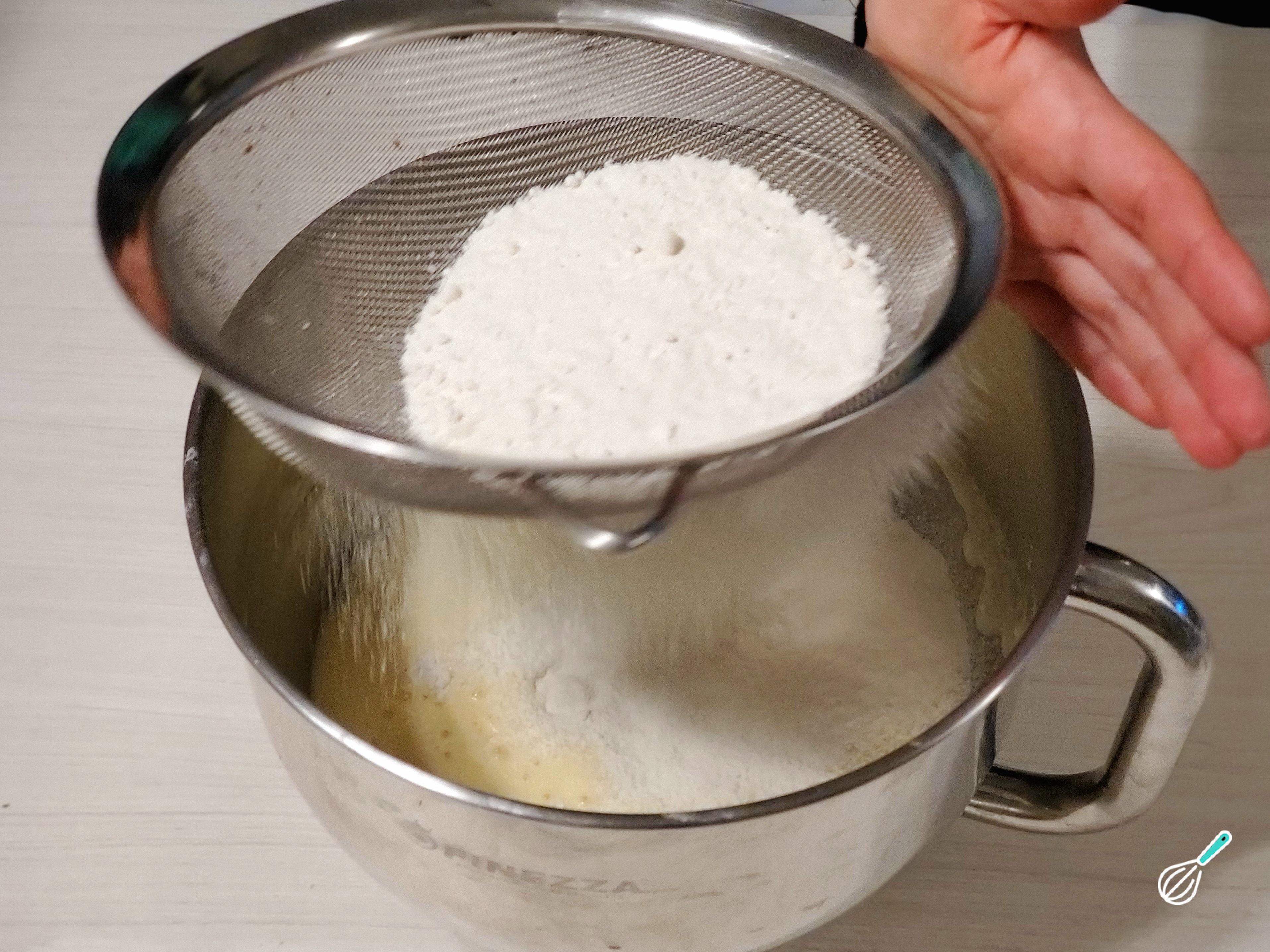 Peneire os ingredientes secos antes de adicioná-los à mistura para obter um bolo bem fofo. Você pode peneirar a farinha, o fermento e uma pitada de sal em uma tigela limpa. Em seguida, peneire-os novamente sobre a tigela com a mistura de ovos, misture devagar para não quebrar as bolhas que se formaram no ovo durante a batida.