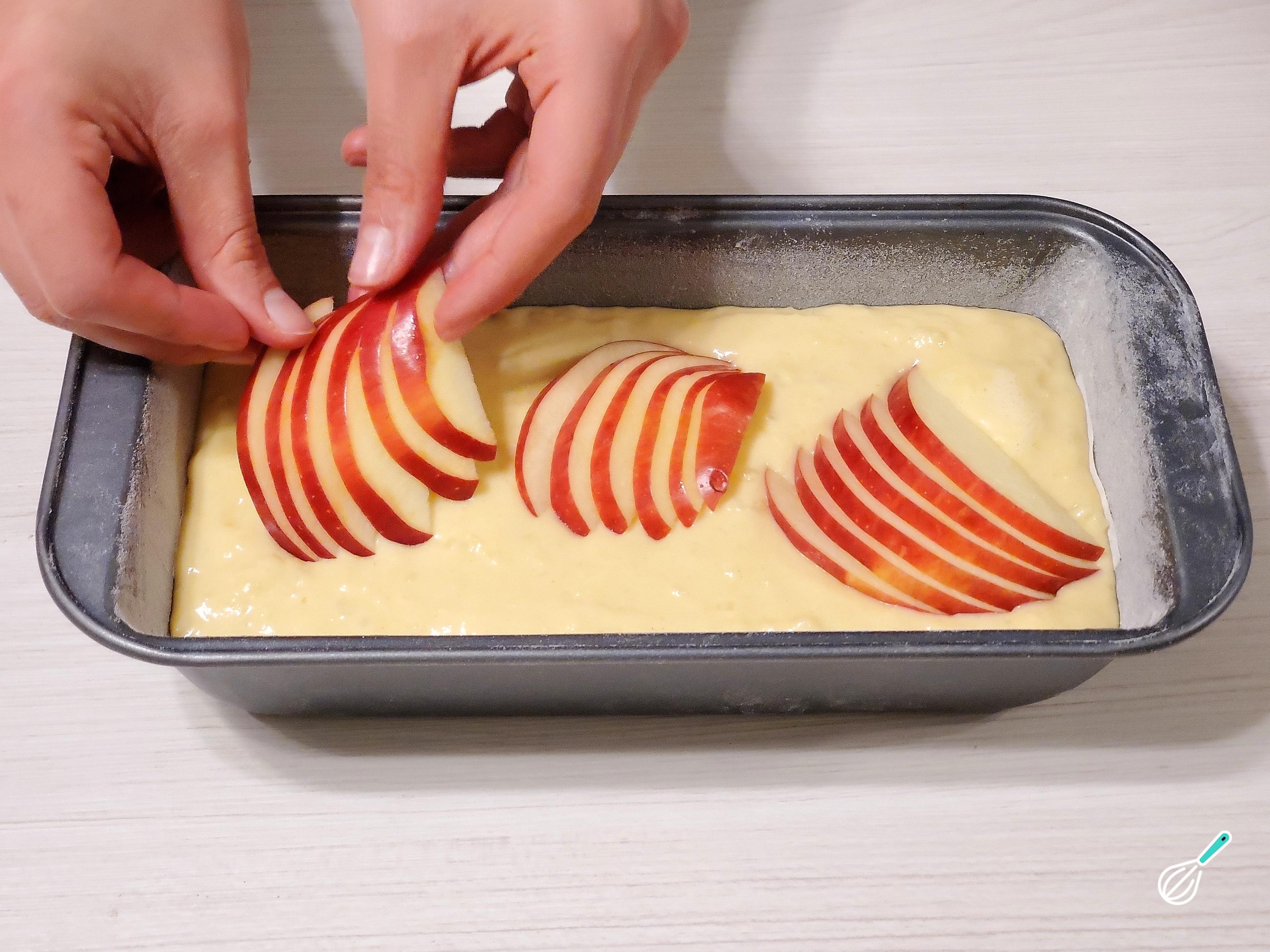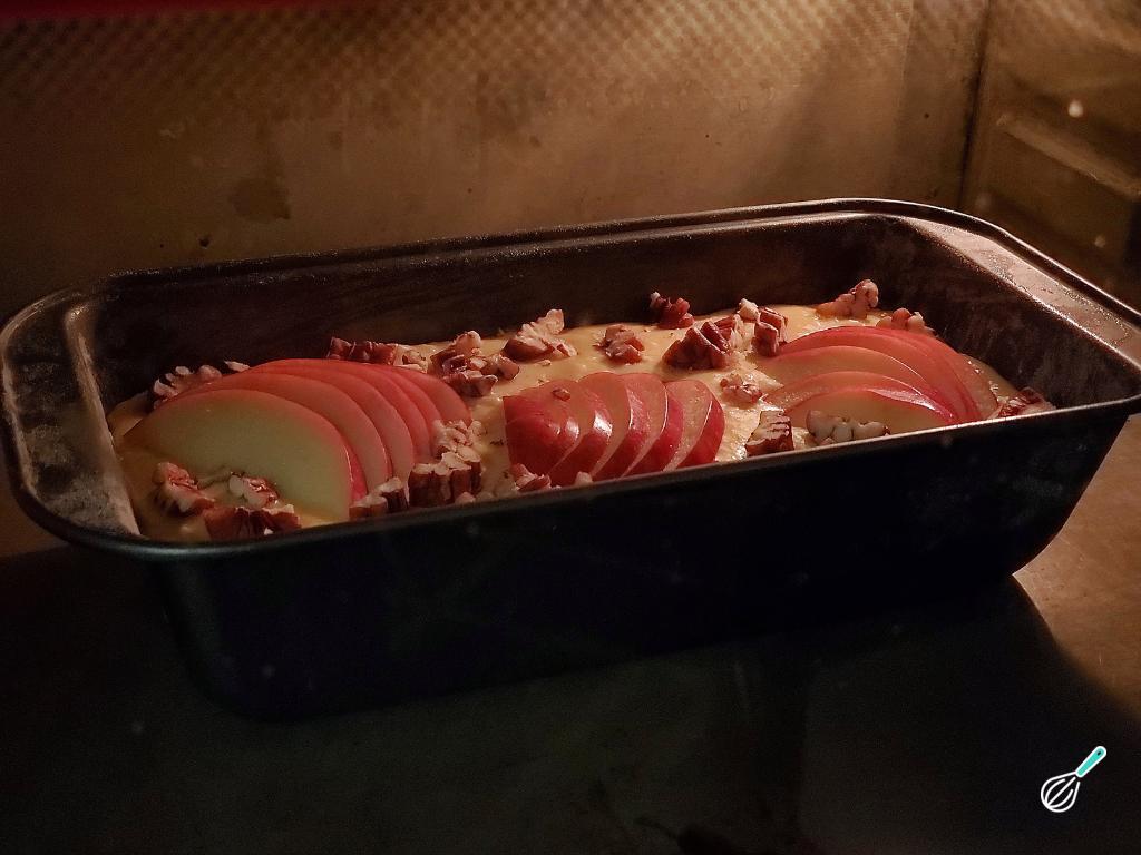 Antes de assar, corte uma maçã com a casca em rodelas finas e coloque em forma de leque sobre a massa. Você também pode decorar com nozes tostadas e picadas.