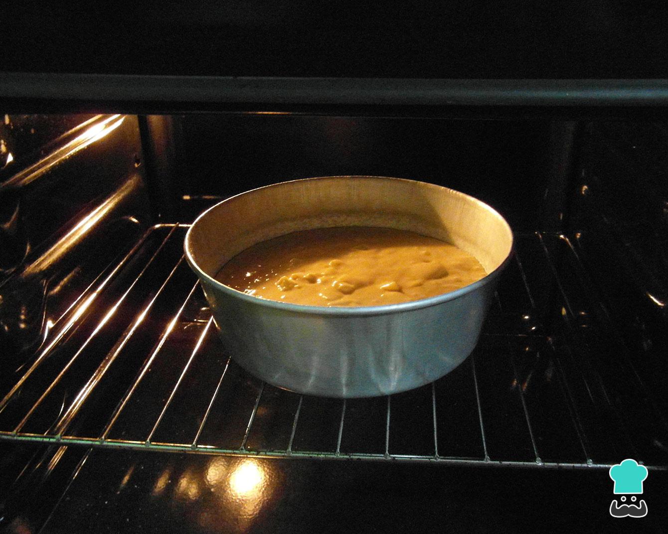 Quando todos os ingredientes deste bolo de aveia sem açúcar estiverem bem misturados coloque na forma untada. Asse no forno preaquecido a 180ºC por 40-45 minutos ou até passar no teste do palito.