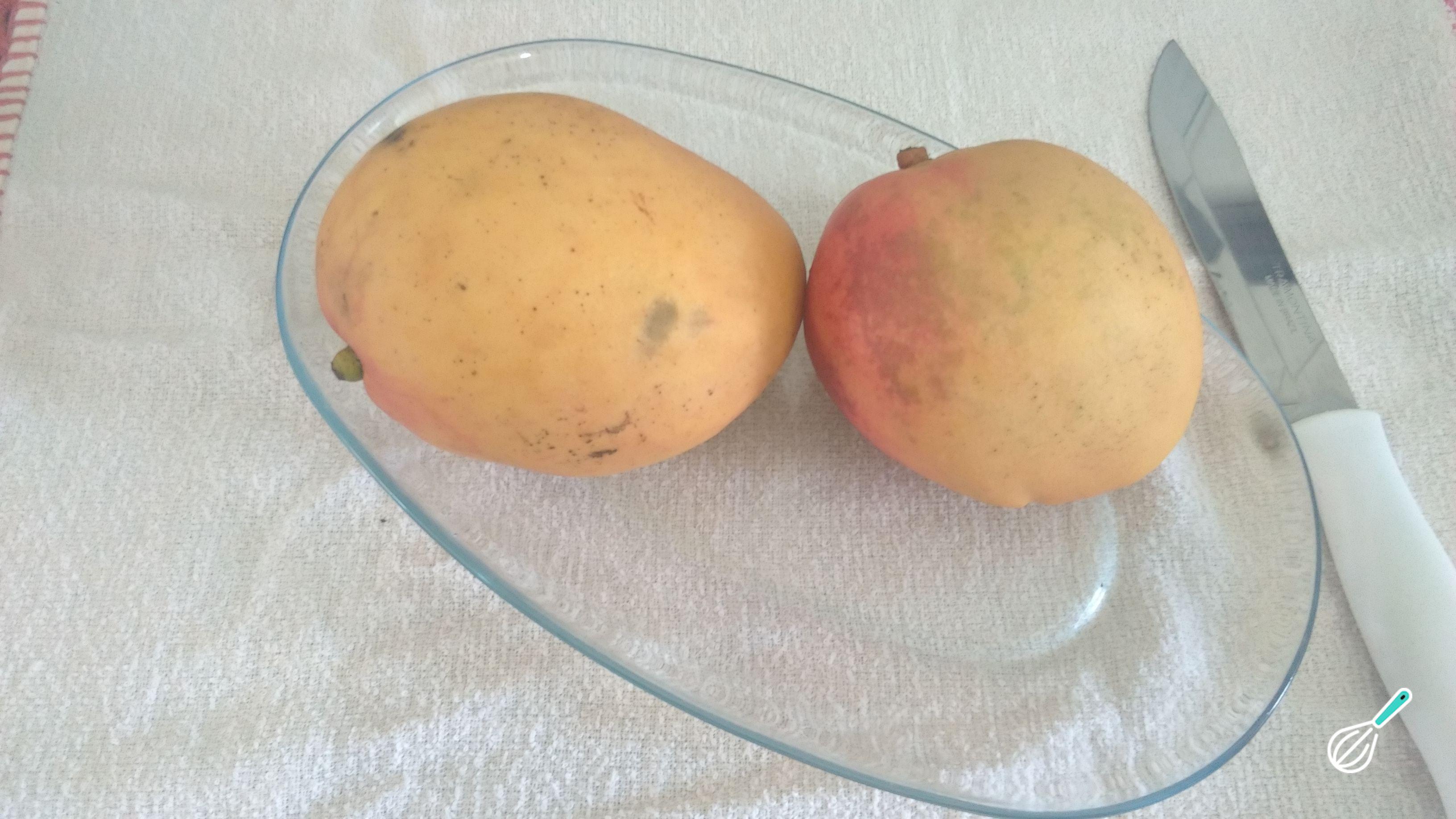 Para preparar este bolo de manga, a primeira coisa que você precisa é escolher uma manga grande.