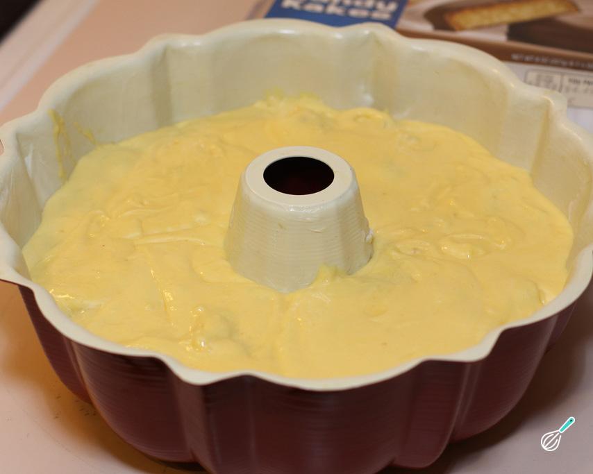 Por último junte o fermento e misture ligeiramente. Coloque esta massa do bolo de maracujá numa forma untada e enfarinhada e asse no forno a 180ºC por 30-40 minutos.