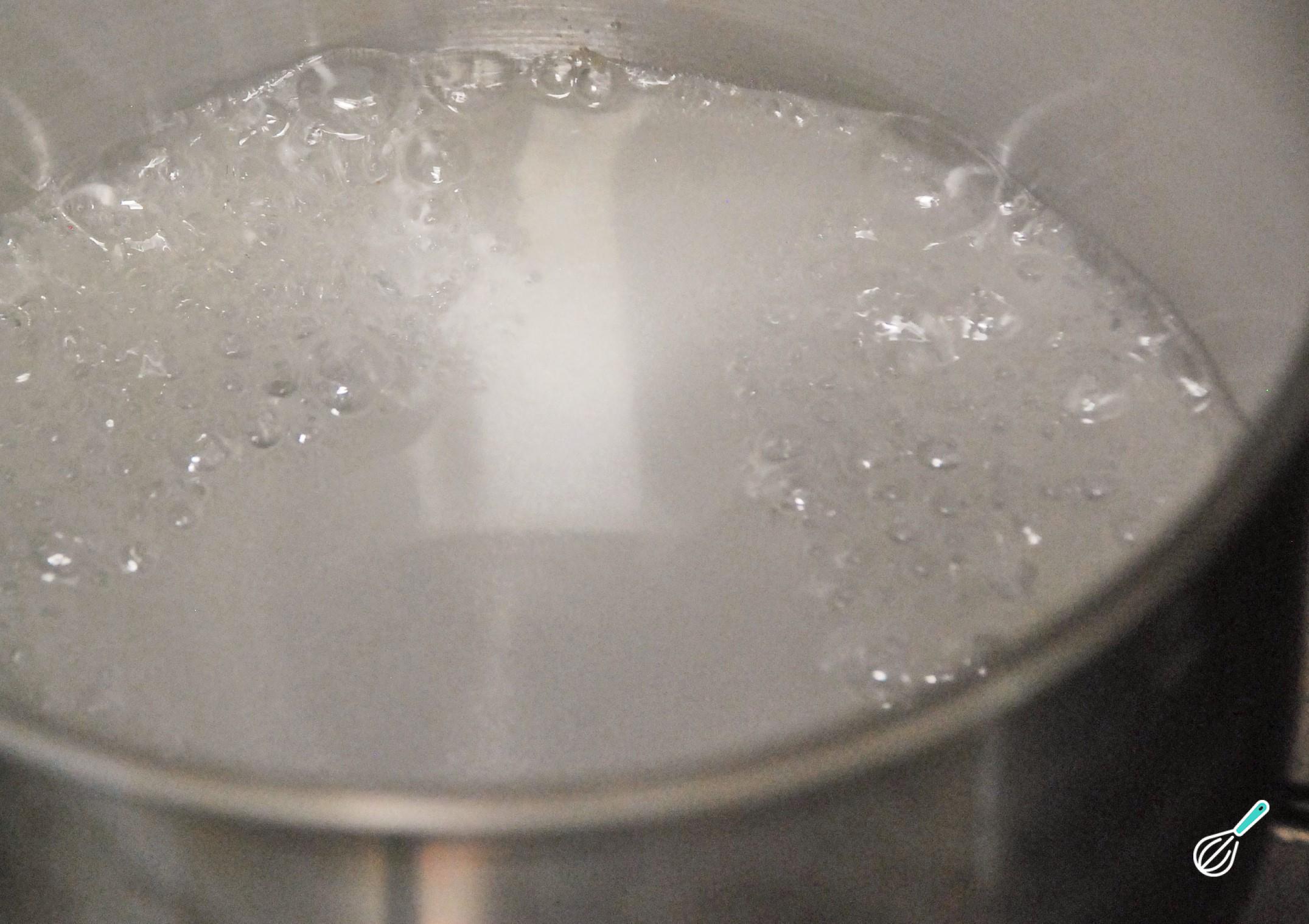 Enquanto o bolo assa, prepare a calda: numa panela pequena coloque a água e o açúcar e deixe até o açúcar dissolver e a calda começar fervendo. Apague o fogo e acrescente a polpa de maracujá.