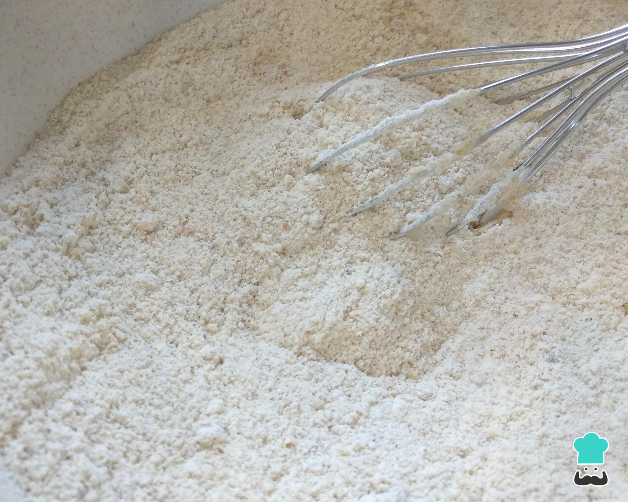 Numa tigela misture a farinha com o açúcar.