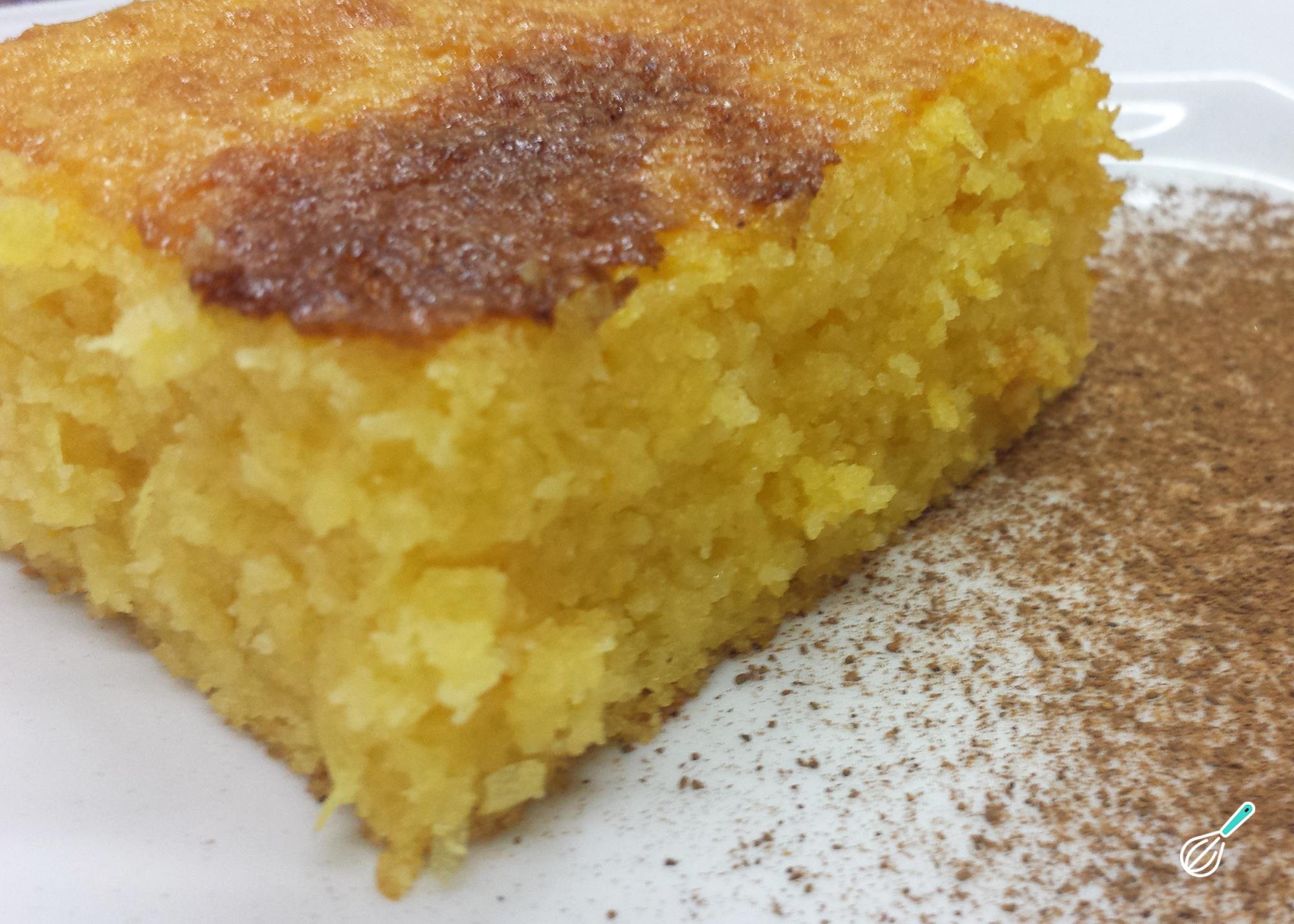 Retire o bolo de milho de liquidificador do forno e deixe esfriar um pouco antes de desenformar. Depois é só se deliciar! Diga nos comentários o que você achou e suba foto do seu bolo pronto. Bom apetite!