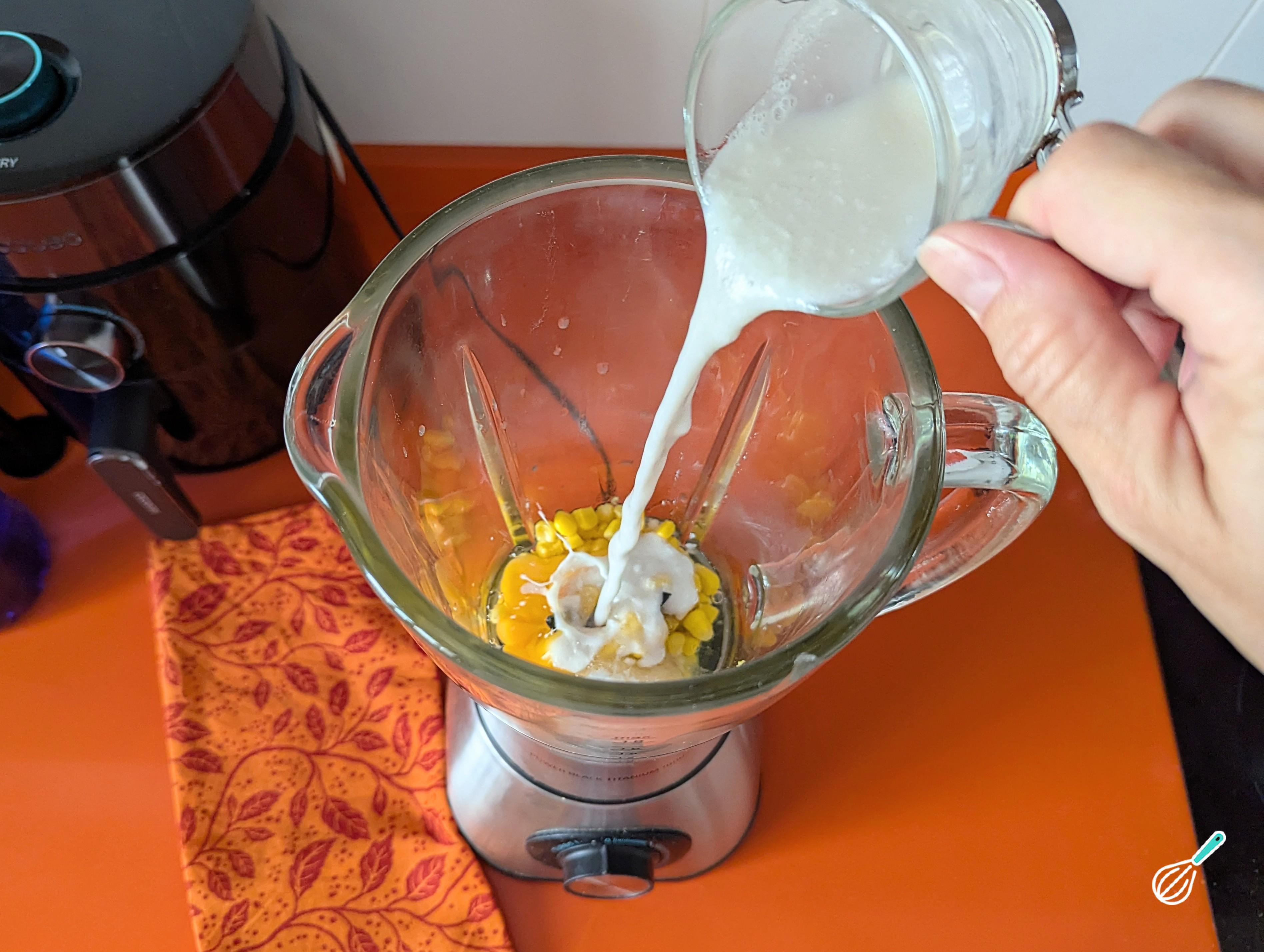 Bata por cerca de 30 segundos, até formar um creme homogêneo. Se preferir uma textura mais rústica, bata por menos tempo para deixar uns pedacinhos de milho.