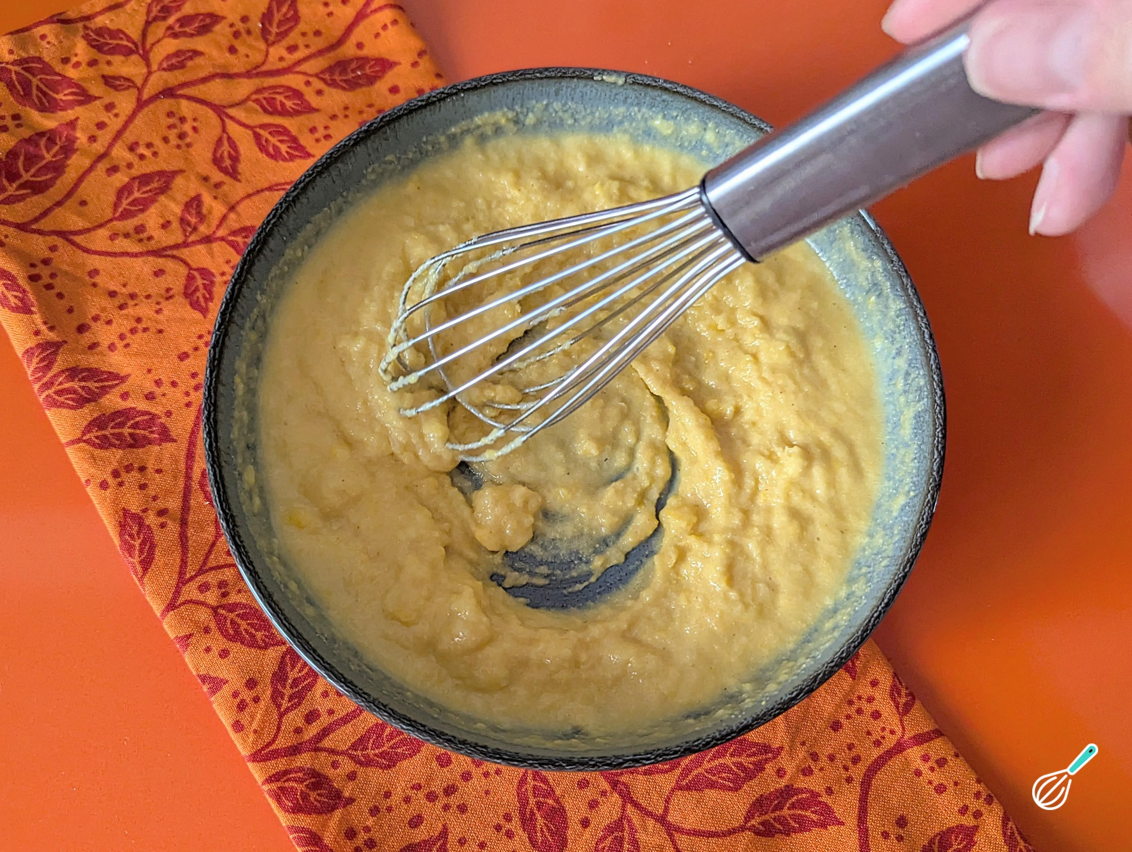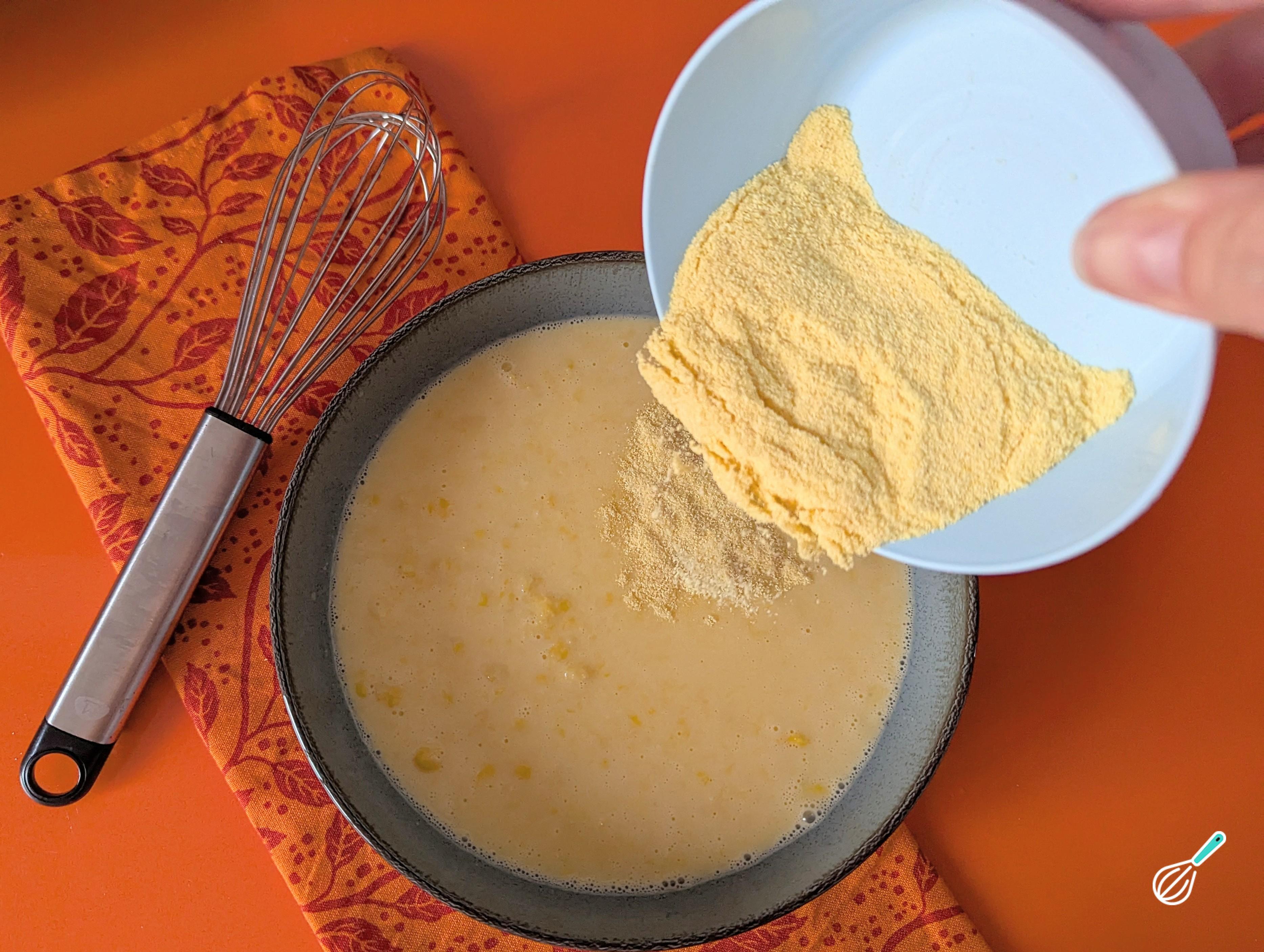 Em um prato fundo ou tigela pequena, despeje o creme do liquidificador e adicione aos poucos a farinha de milho.