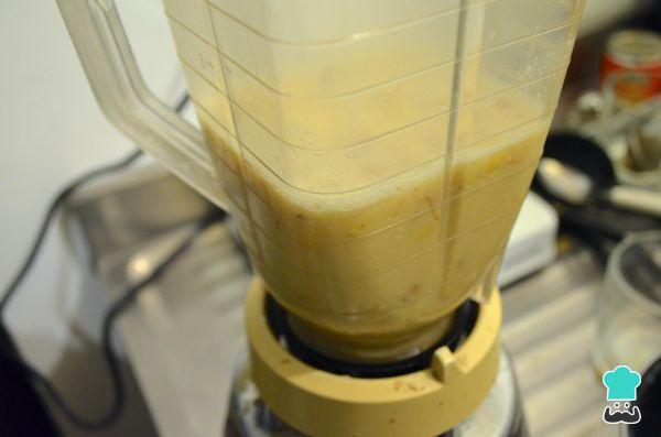 Verta a mistura do liquidificador para uma taça, adicione o açúcar e misture bem com um batedor eléctrico.