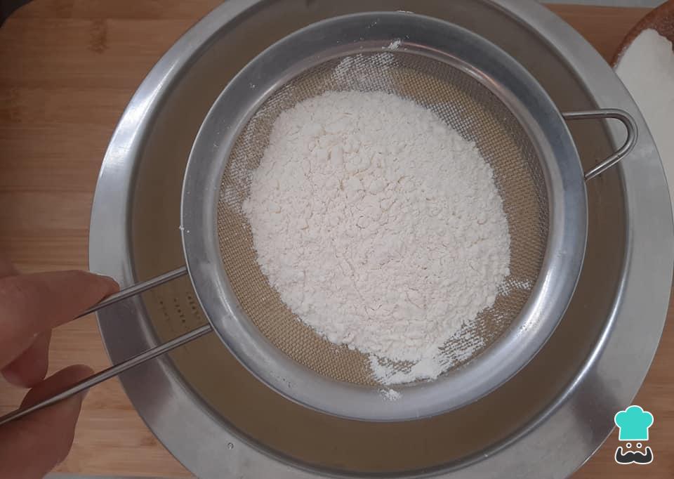 Adicione a farinha de trigo peneirada aos poucos e misture até incorporar à massa.