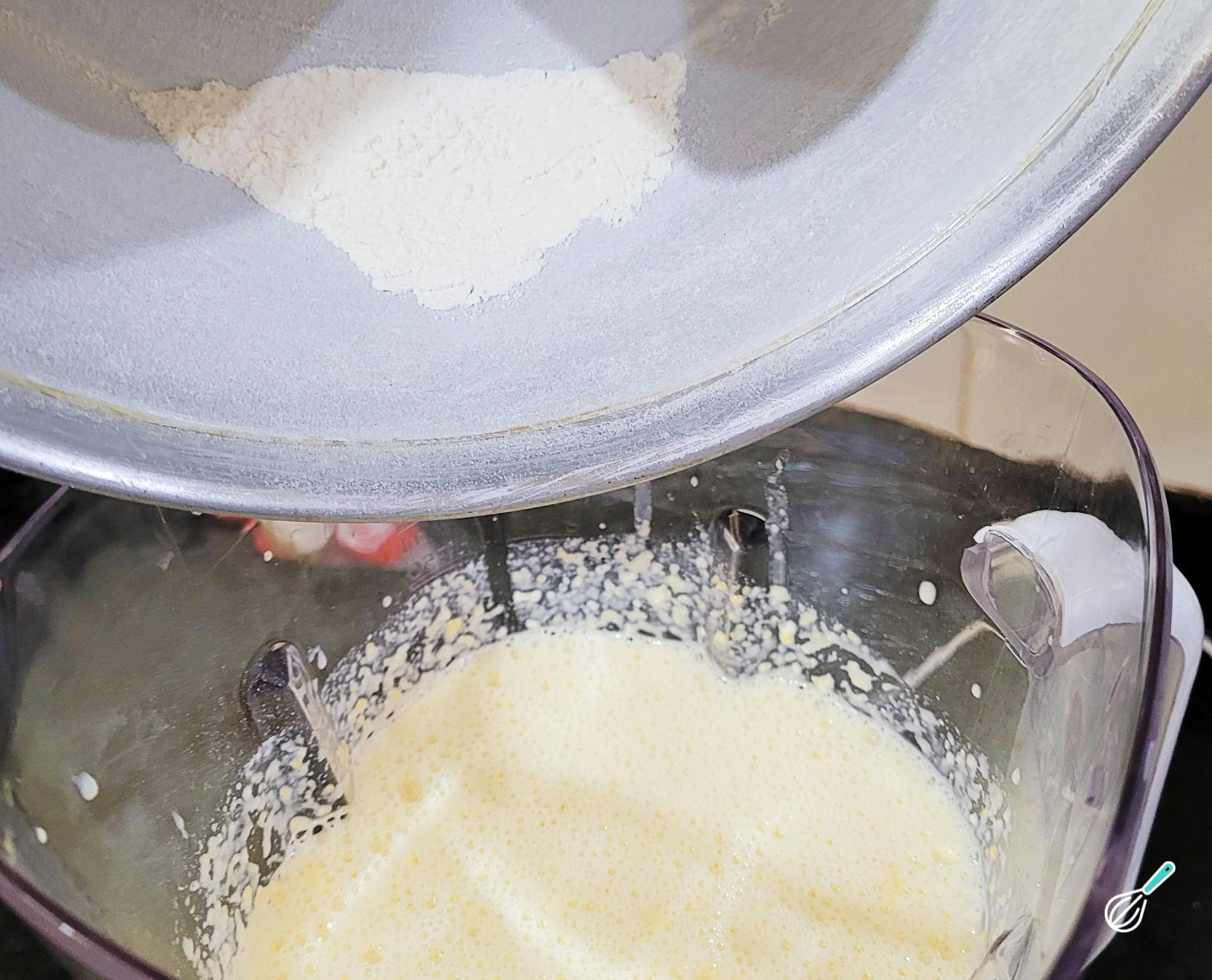 Bata bem por 1 minuto. Em seguida, adicione o fermento em pó e bata rapidamente no pulsar.