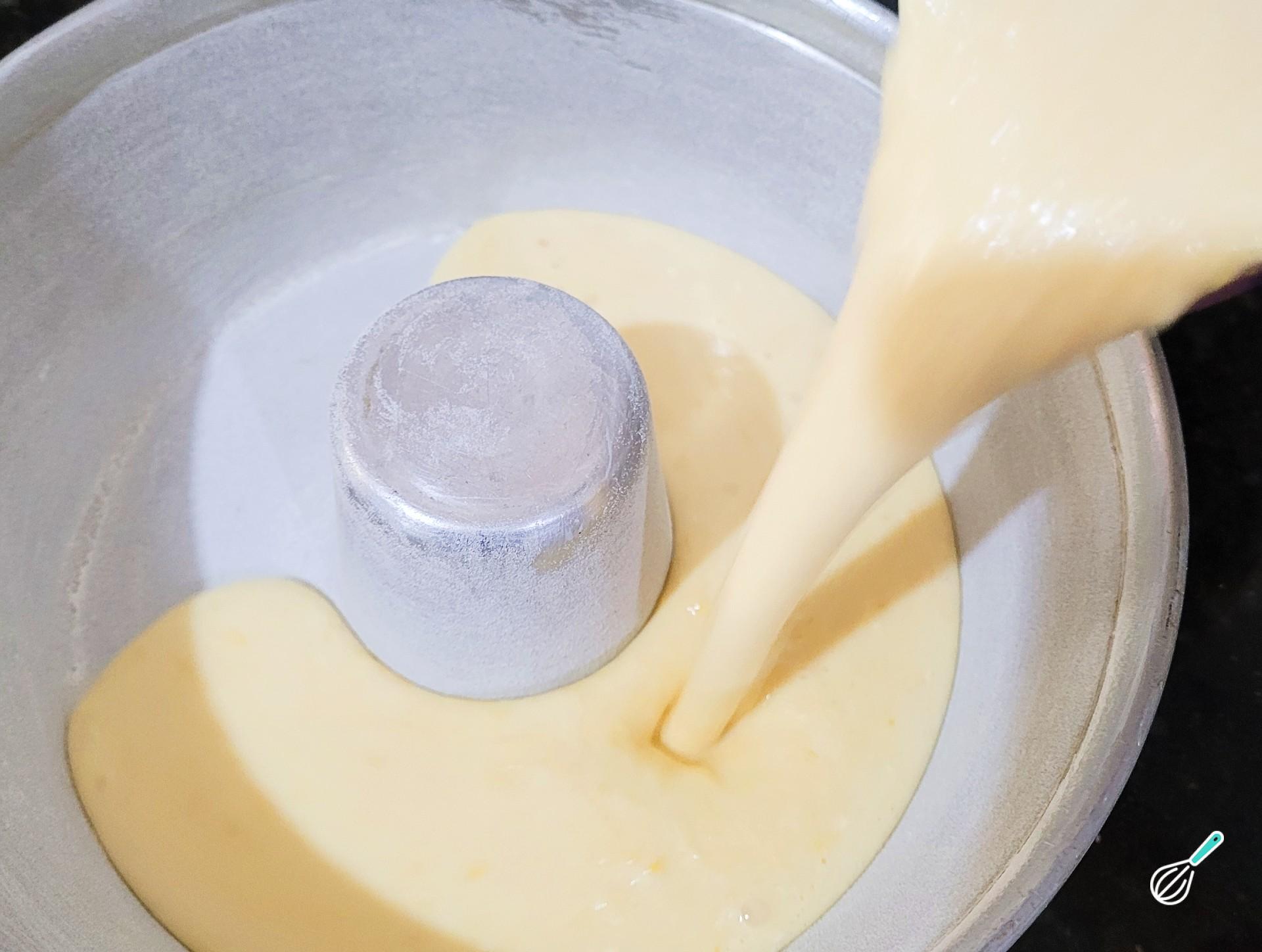 Despeje a mistura em uma forma untada com margarina e farinha.