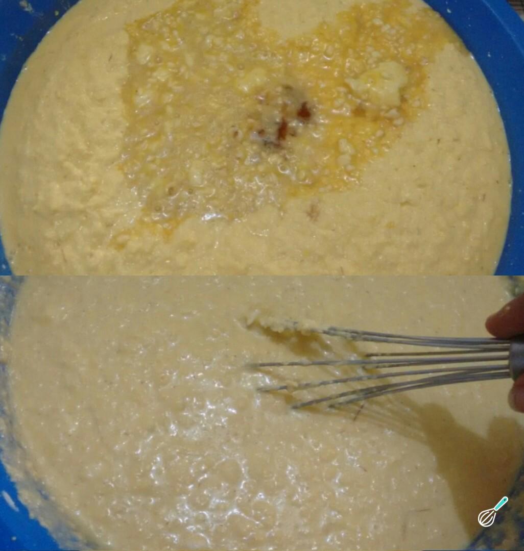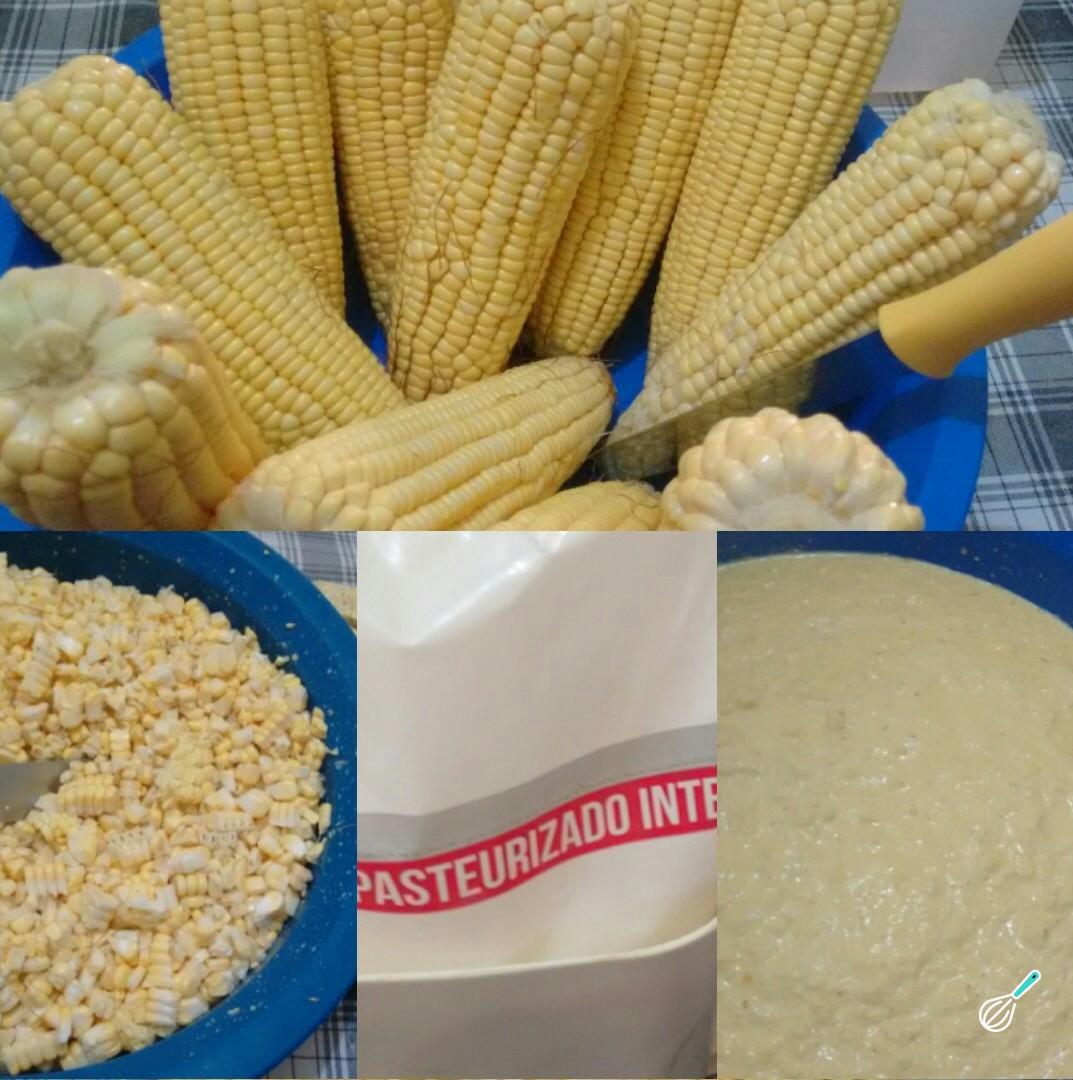 Por fim acrescente o milho batido e misture tudo muito bem.