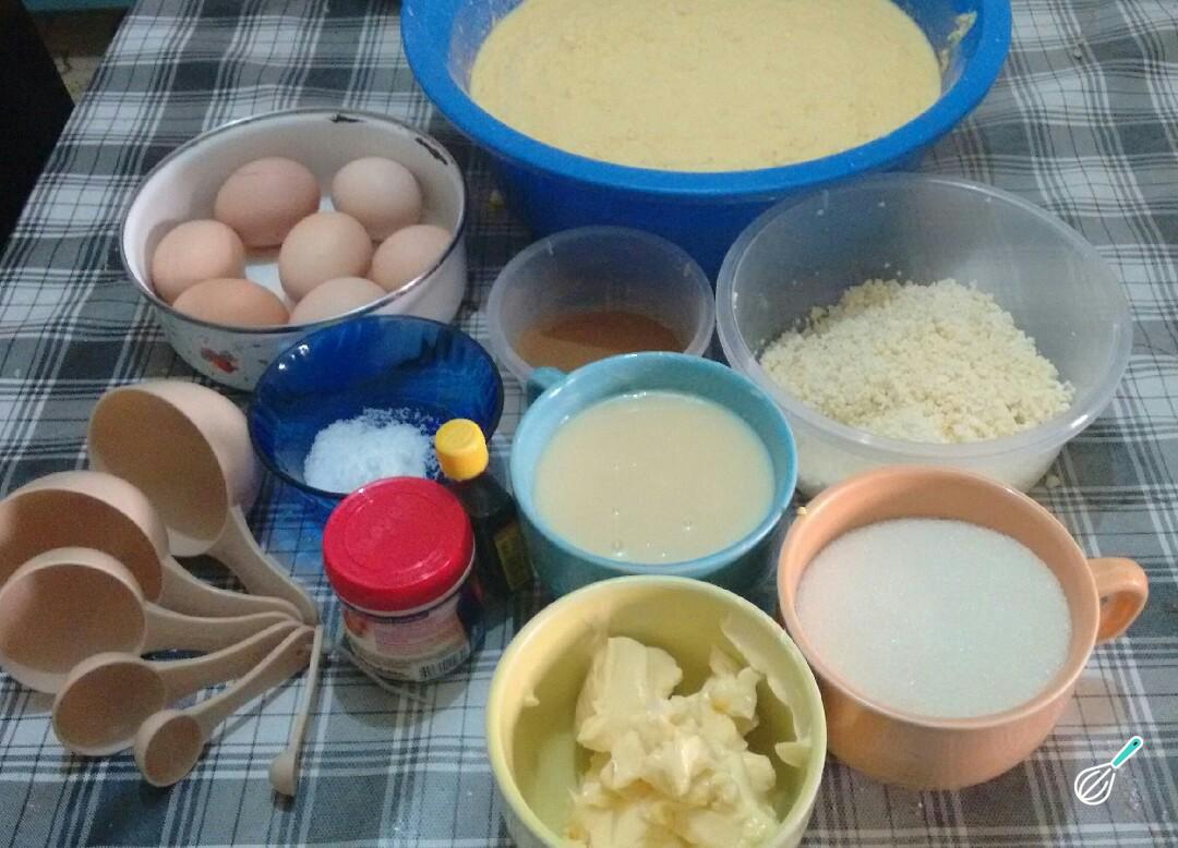 Quando você tiver o seu creme de milho pronto, faça o 'mise en place' para continuar preparando esta receita de bolo de milho verde de espiga com leite condensado.