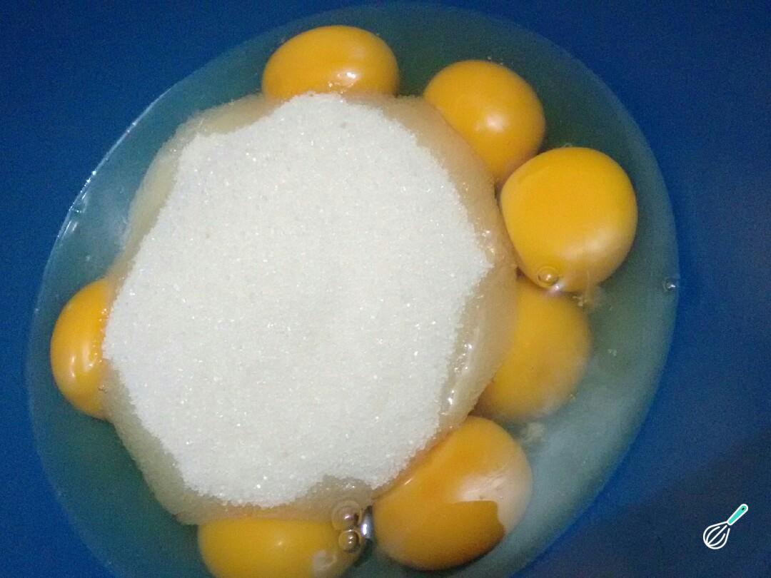 Junte aos ovos o açúcar e mexa muito bem. Este creme que resulta dos ovos batidos com o açúcar ajuda a tornar o bolo de milho verde de espiga com leite condensado mais cremoso.