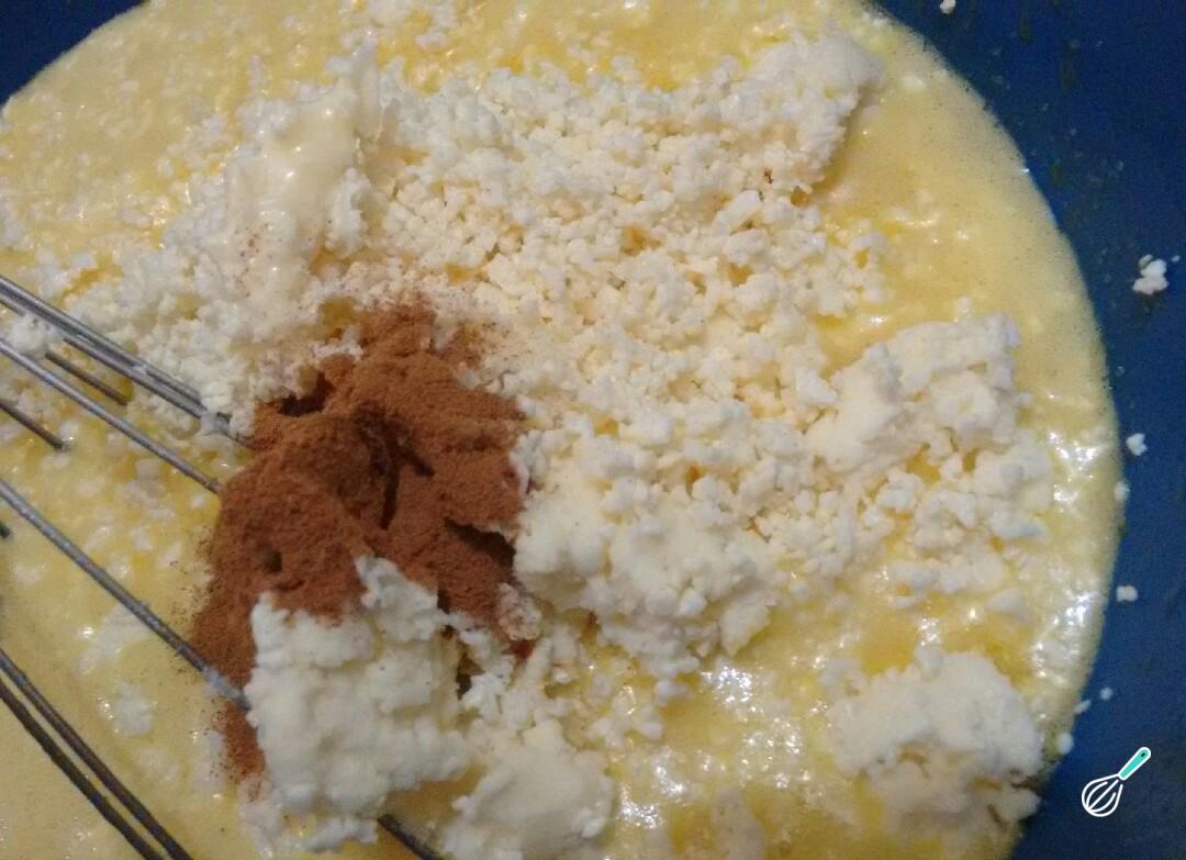 Acrescente o queijo, a canela e o sal e continue batendo até homogeneizar todos os ingredientes.