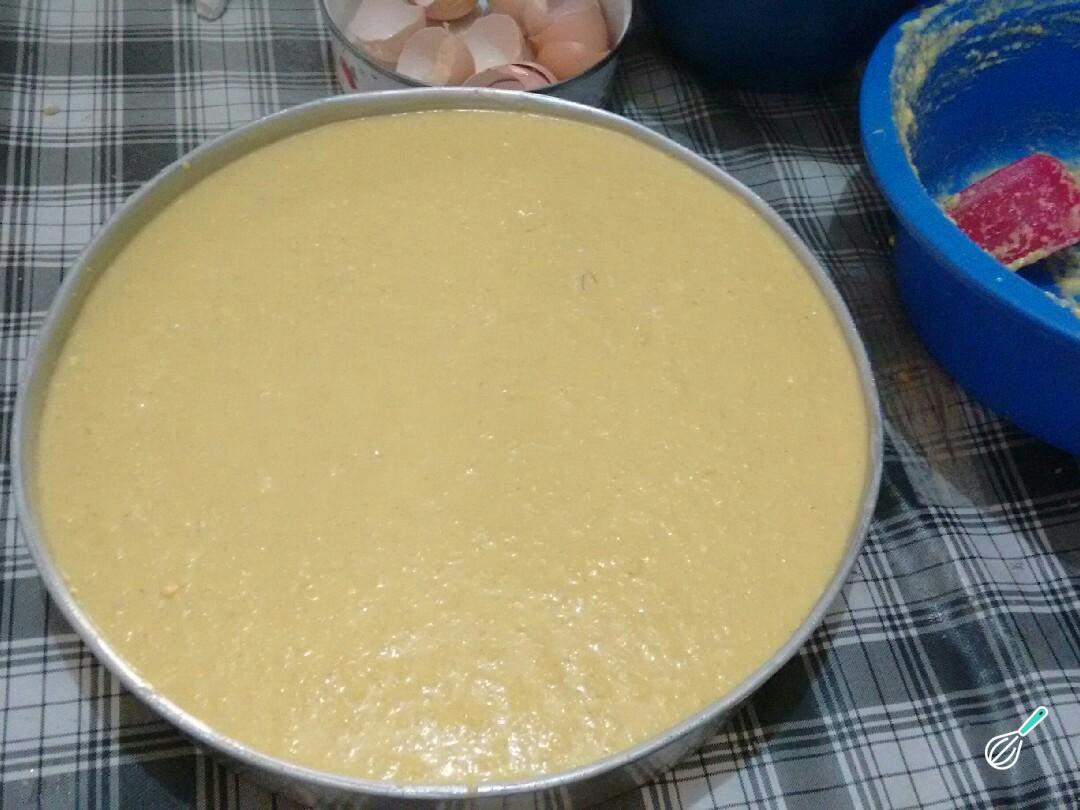 Unte uma forma de bolo grande ou duas médias e coloque nelas a massa do bolo. Leve para assar em forno pré-aquecido a 200ºC por aproximadamente 45 minutos.