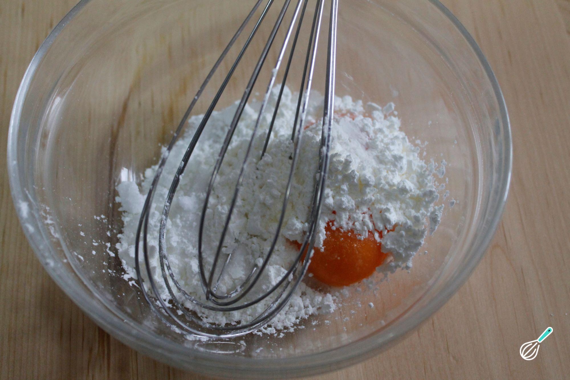 Para fazer a receita de nata (ao estilo italiano), primeiro, você deve saber que tem várias etapas. Vamos começar pelo de creme de recheio. Para isso, coloque as gemas com o açúcar e o amido de milho em uma tigela, misture bem para que não forme grumos de amido de milho.