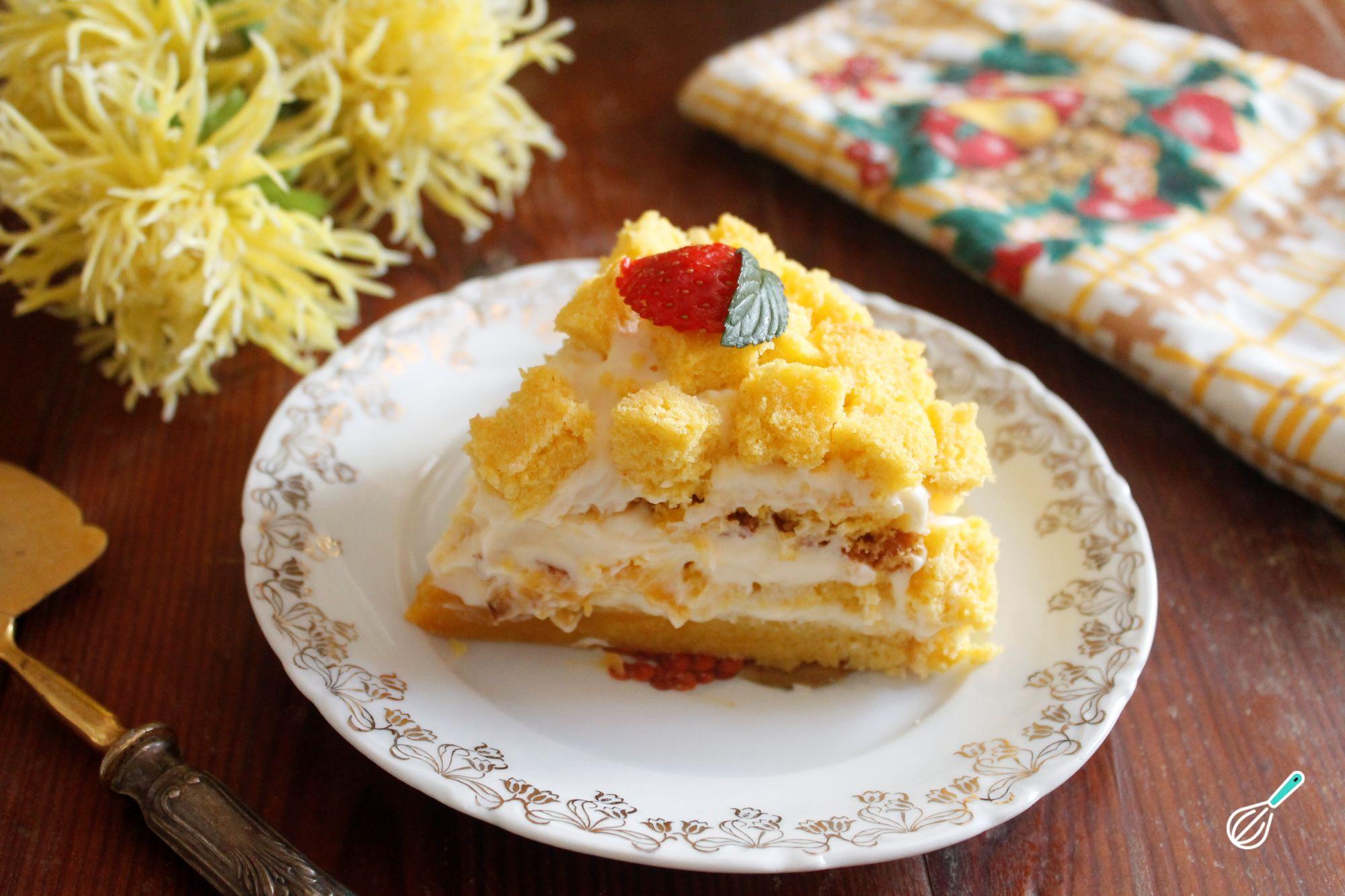 Tudo para imitar a flor da mimosa, que é justamente o símbolo do Dia da Mulher na Itália. Essa receita consiste num bolo com um sabor suave graças ao seu recheio de nata com limão, acompanhado por muitas camadas de pão de ló genovês.
