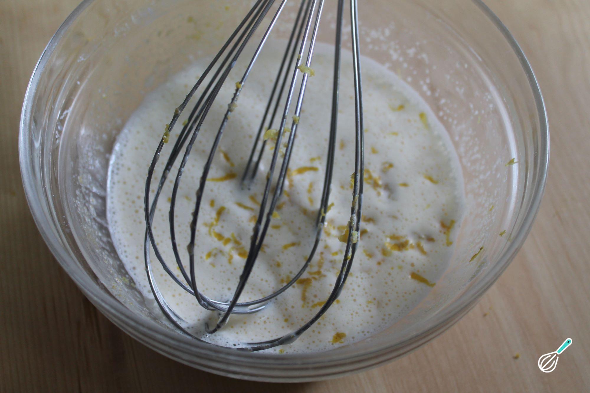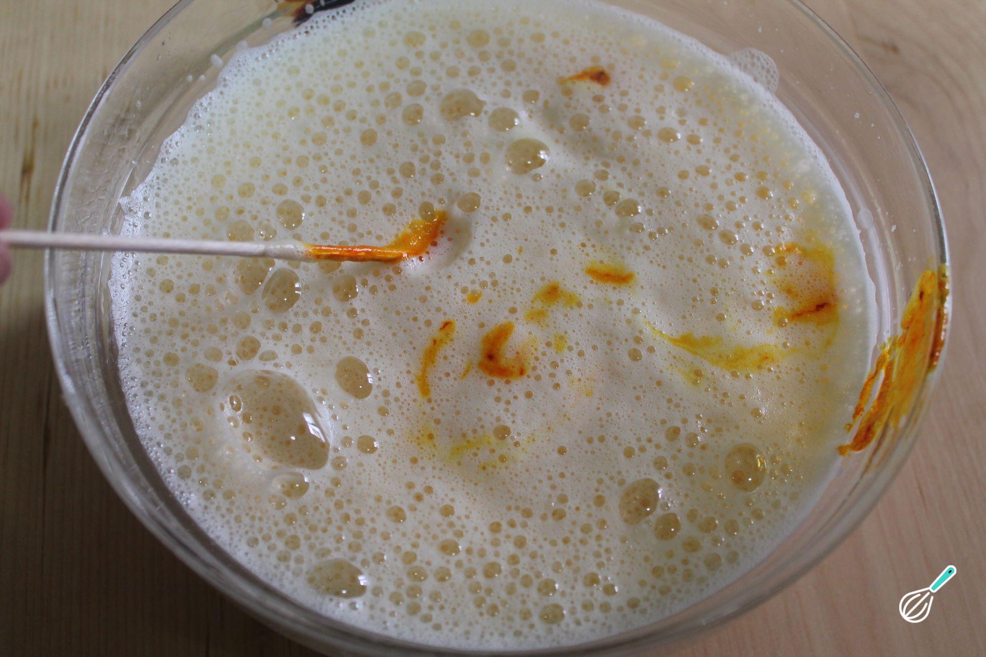 Adicione o corante amarelo e bata novamente para integrá-lo bem.
