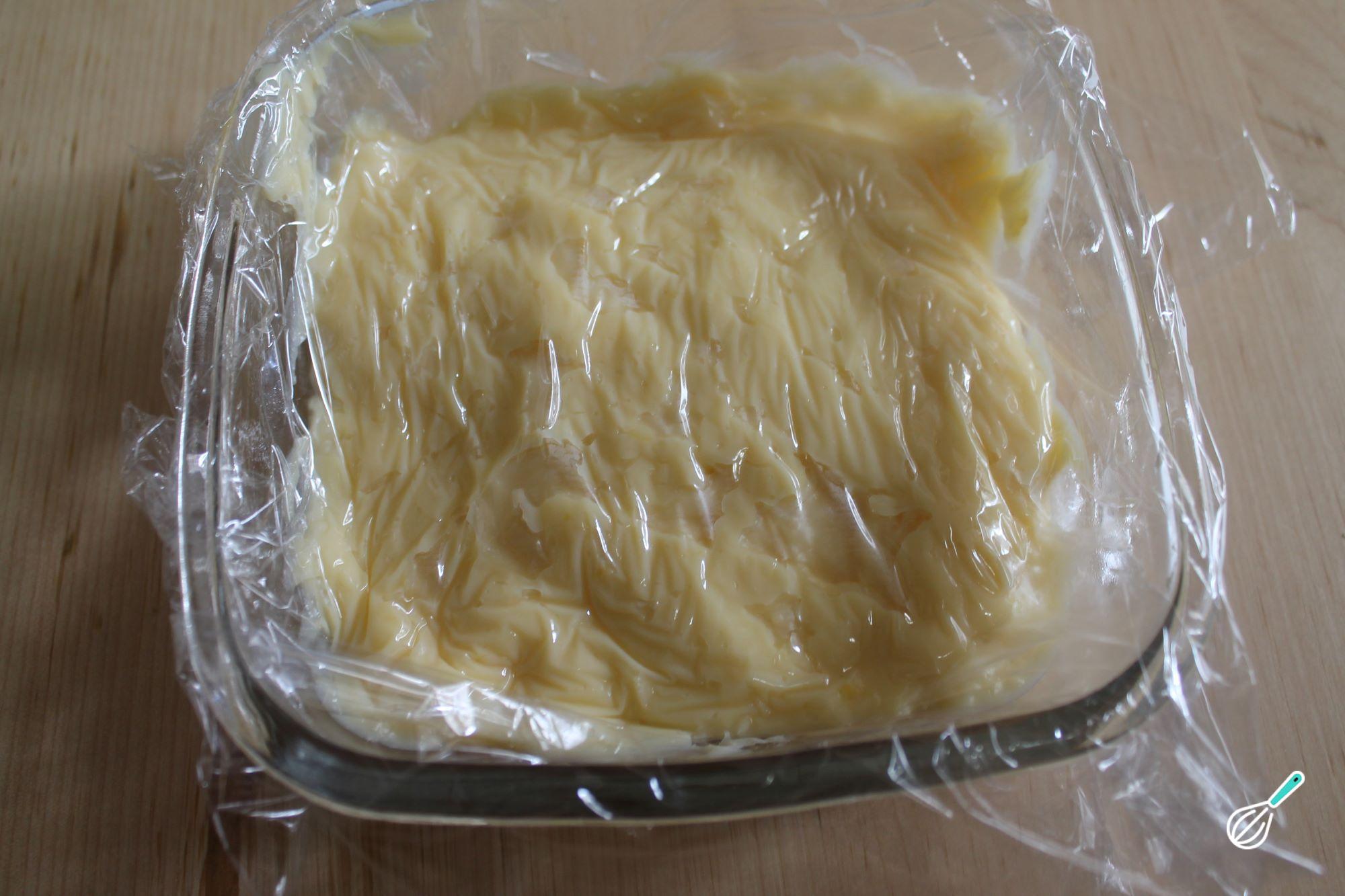 Retire o creme do fogo e despeje em outra tigela. Em seguida, cubra com filme plástico e deixe esfriar completamente. Quando esfriar, coloque na geladeira.