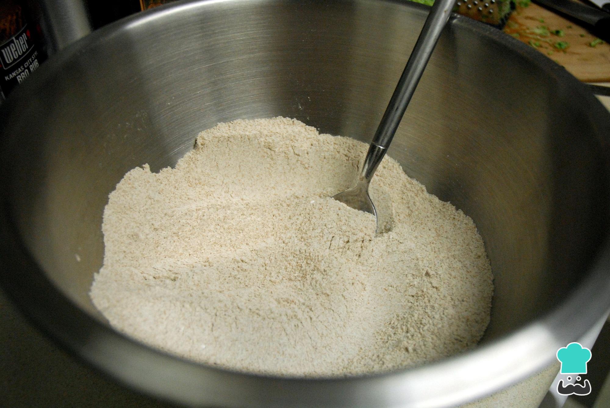 Dica: Adicionamos os ingredientes secos às frutas desidratadas para evitar que, no forno, elas desçam e fiquem no fundo do bolo.