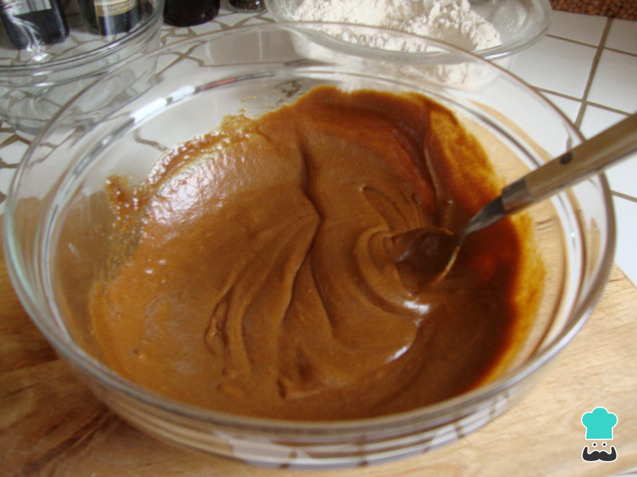 Noutra tigela misture a manteiga, o açúcar, a geleia e o melaço, até obter um creme espesso e homogêneo. Acrescente os ovos e misture muito bem.
