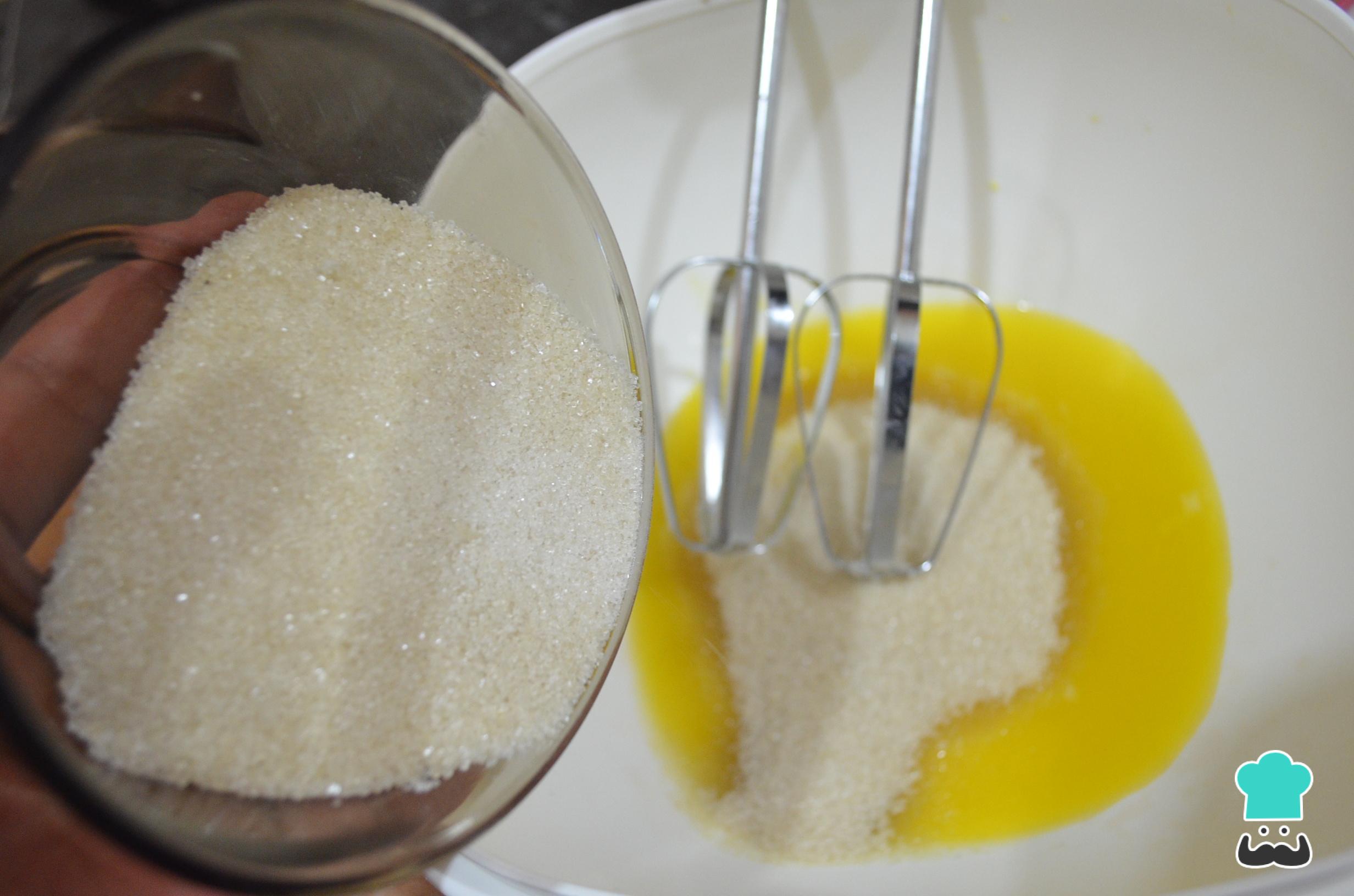Noutra tigela coloque a manteiga derretida e junte o açúcar. Bata até virar um creme e adicione os ovos, um por um, enquanto bate.