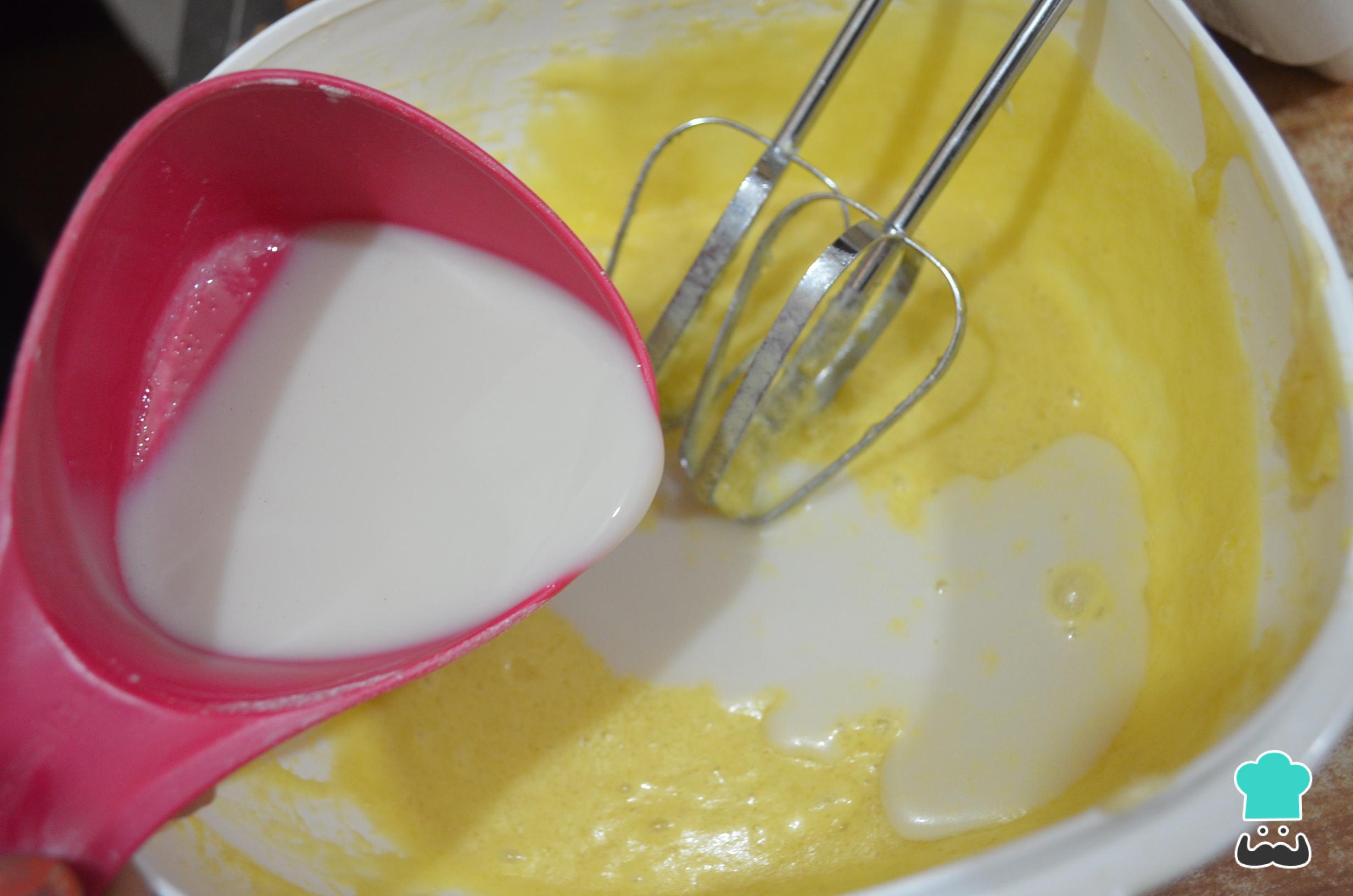 Em seguida coloque o leite aos poucos, enquanto bate em velocidade baixa ou mexe com uma colher.