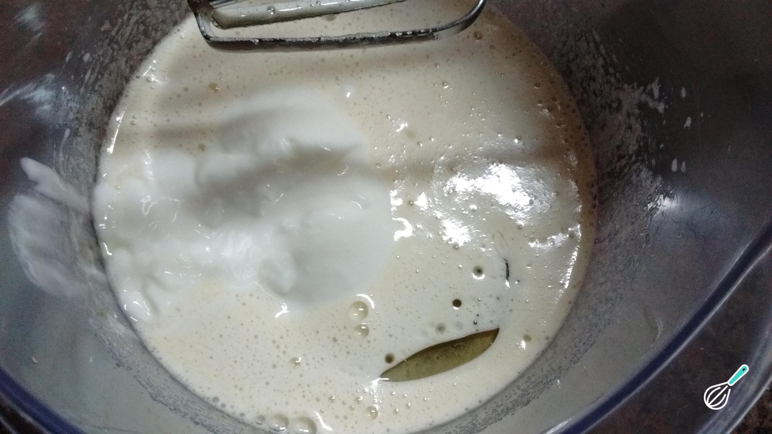 Adicione o óleo e o iogurte, continue batendo por mais alguns minutos.
