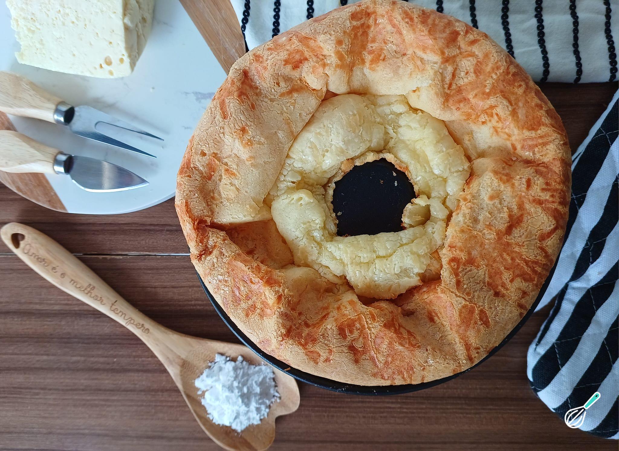 Dica: É normal que o bolo de pão de queijo murche depois de sair do forno.