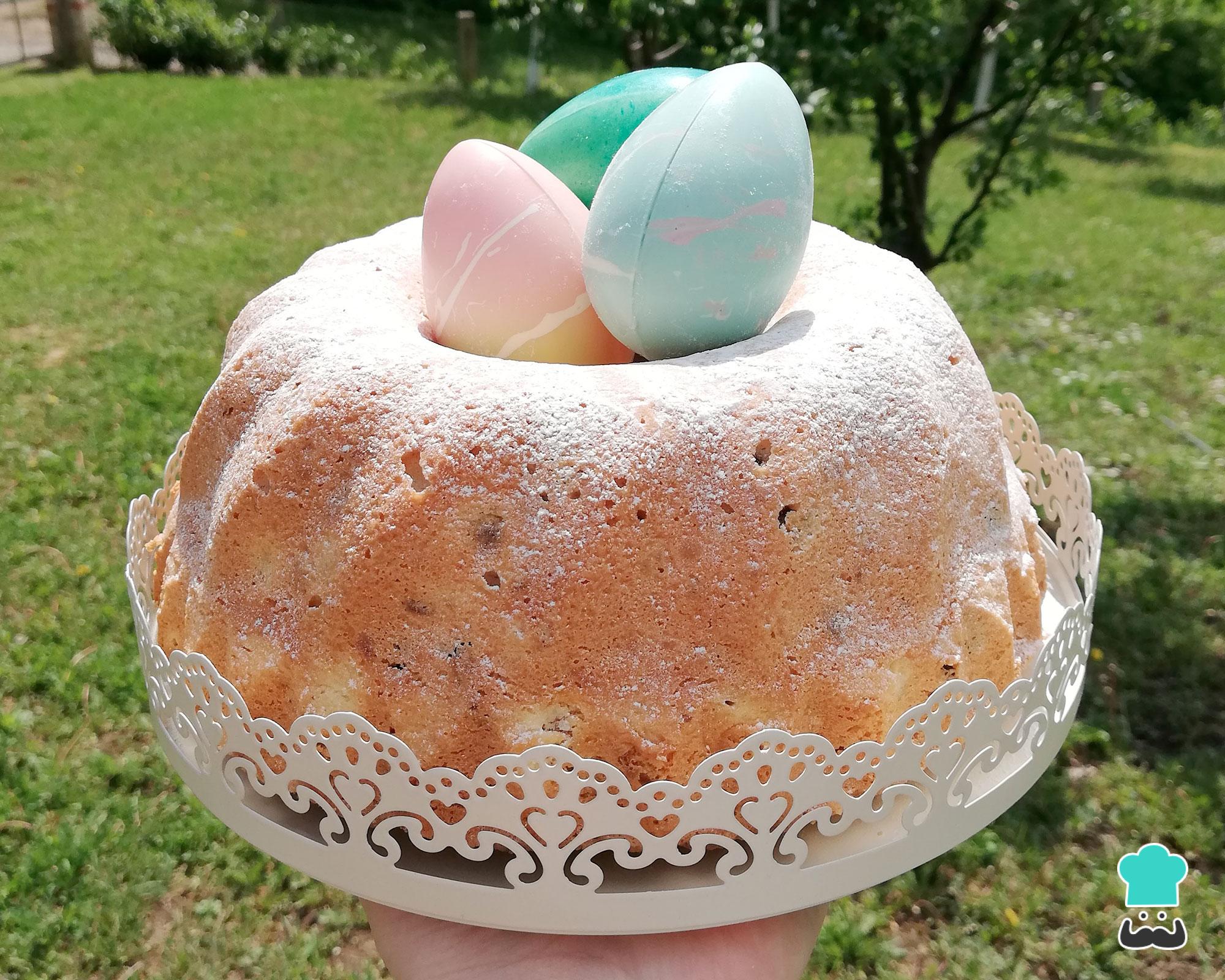 No preparo desta receita de bolo de Páscoa simples vão ingredientes comuns que sempre temos em casa: farinha, açúcar, ovos, manteiga, iogurte e fermento. Para conferir mais sabor acrescentamos também raspas e suco de limão e uva passa.