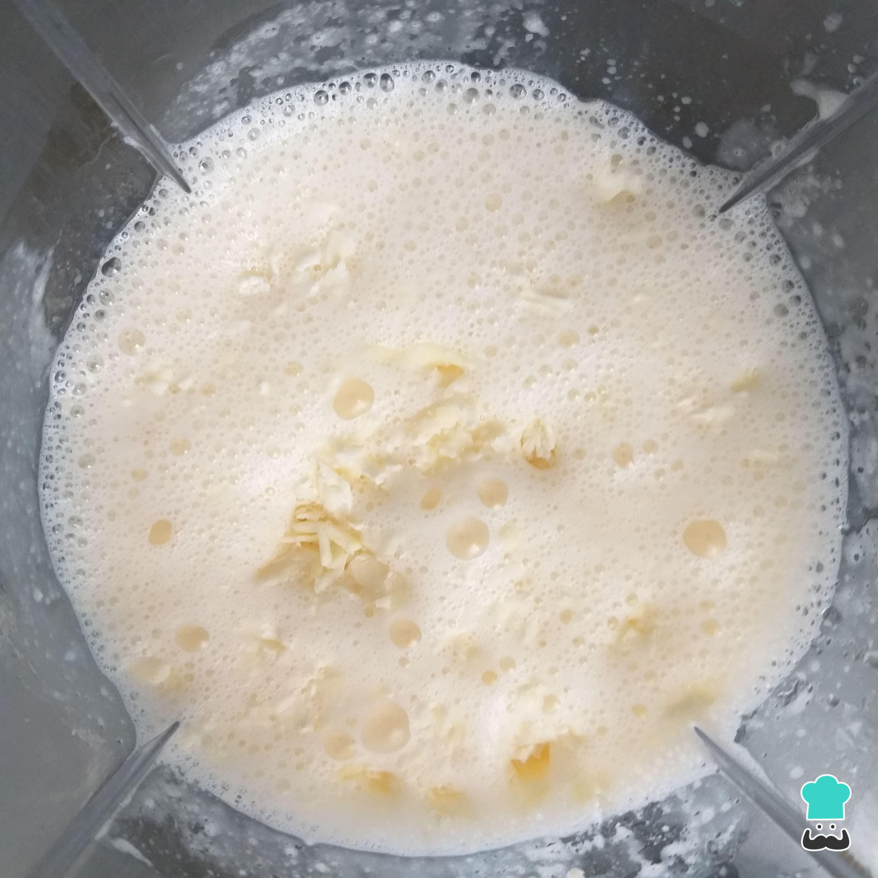 Bata bem no liquidificador o leite, o queijo, os ovos, o óleo e o sal.
