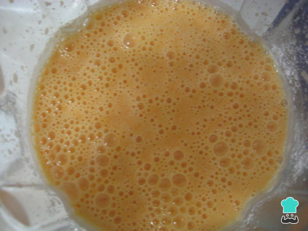Comece por bater no liquidificador os ovos, o óleo e as cenouras descascadas e cortadas grosseiramente.