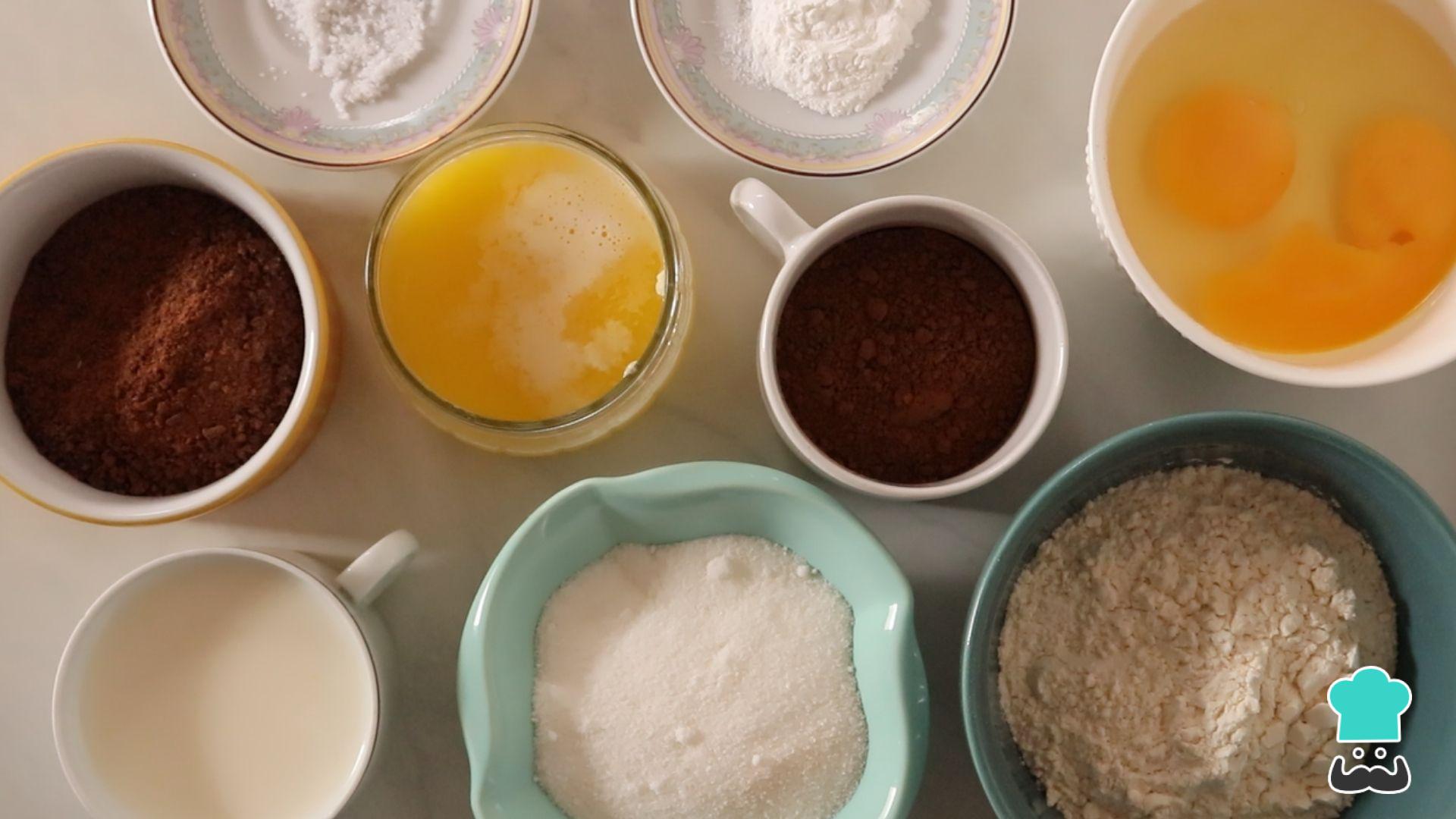 Separe os ingredientes da massa do seu bolo de pote Ovomaltine caseiro e pré-aqueça o forno nos 180ºC.