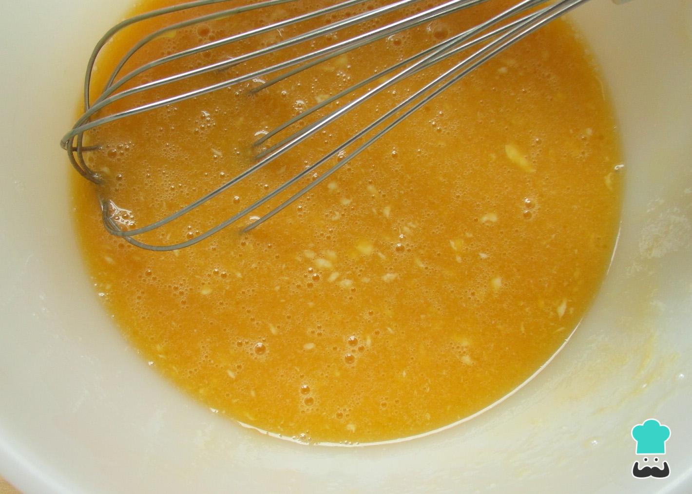 Separe as clara das gemas e bata as claras até ficarem em ponto neve. Em outro recipiente bata a manteiga com as gemas.
