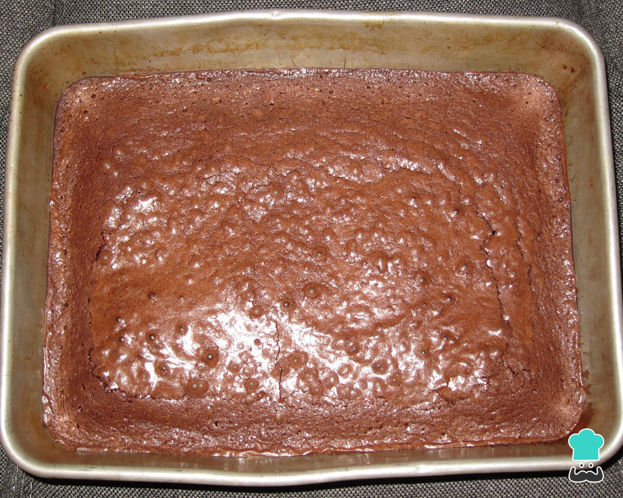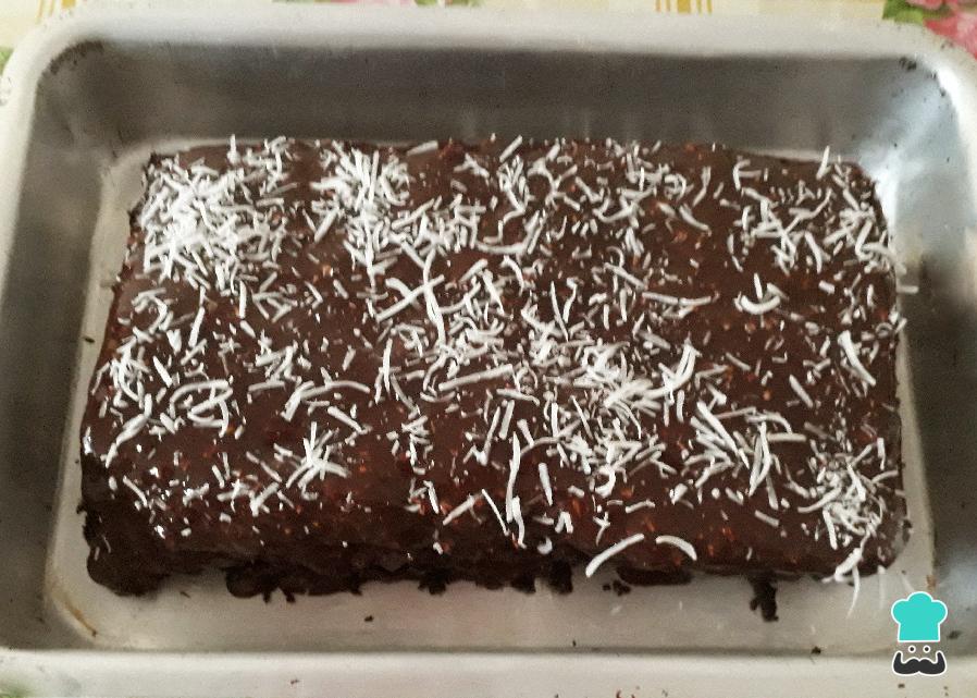Unte uma forma retangular média e despeje a massa. Asse em forno preaquecido a 180 graus por 40 minutos ou até passar no teste do palito. Depois de assado, deixe o bolo esfriar.