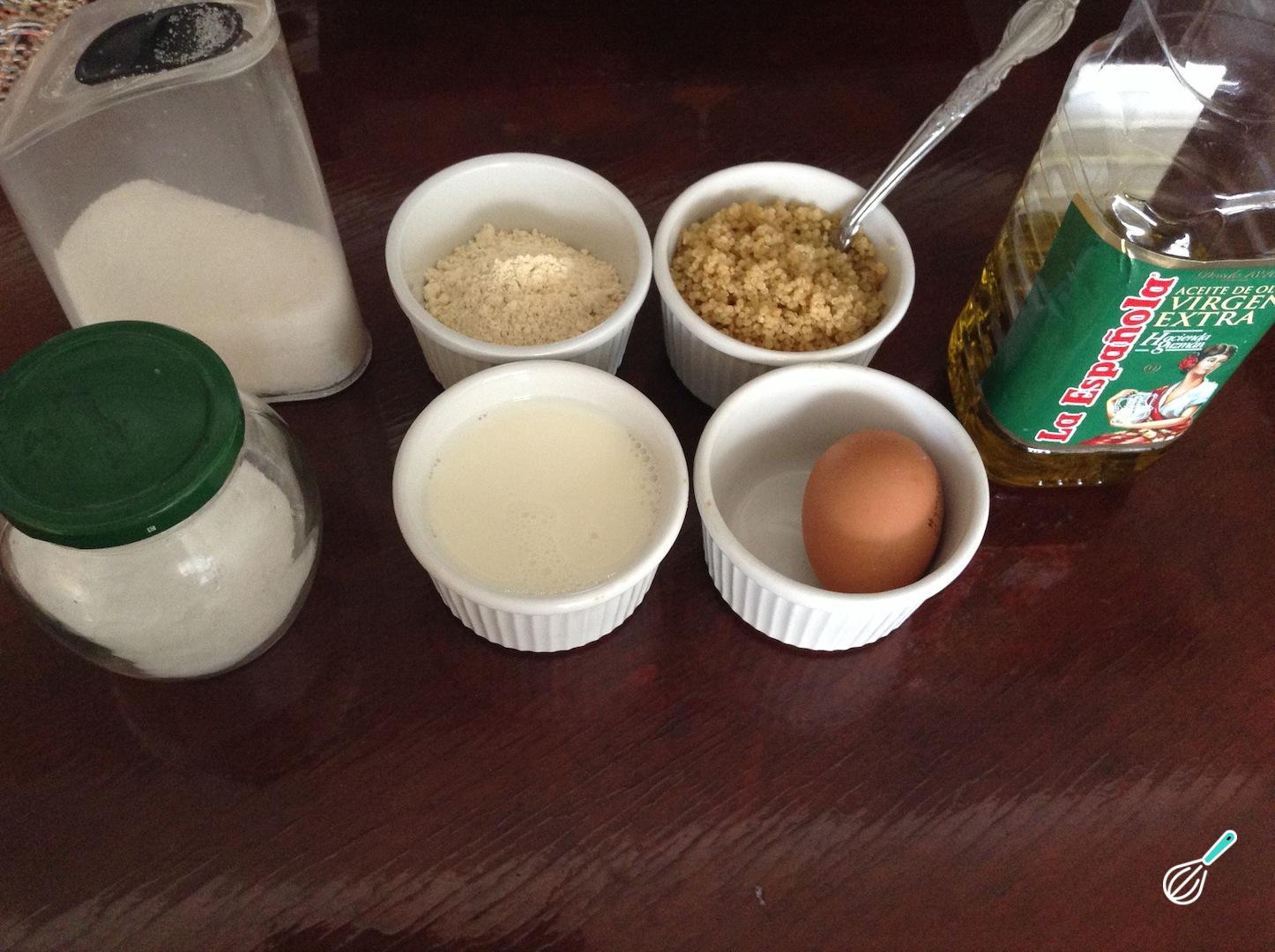 O primeiro passo para fazer esta receita de bolo de quinoa é reunir todos os ingredientes necessários.