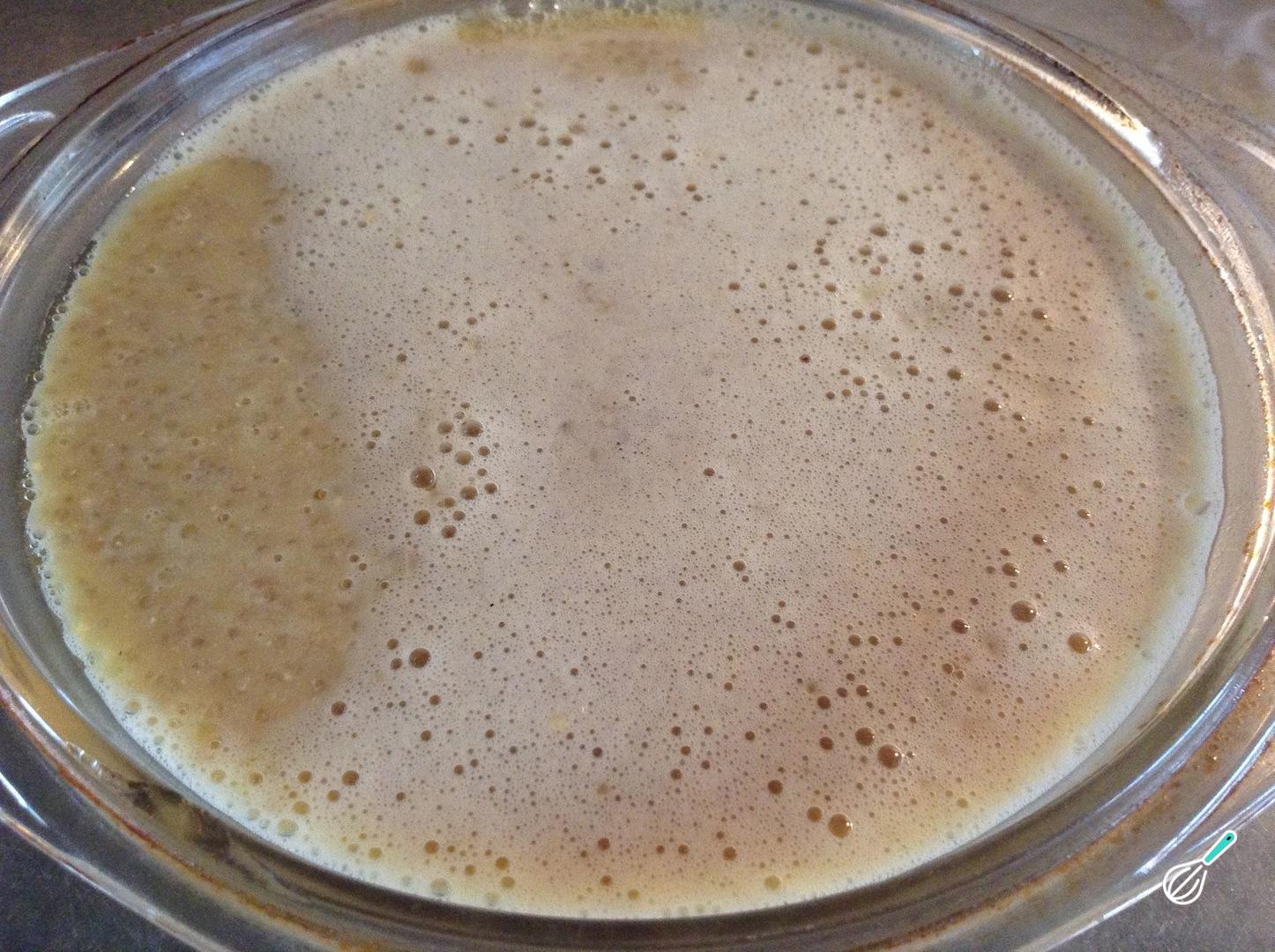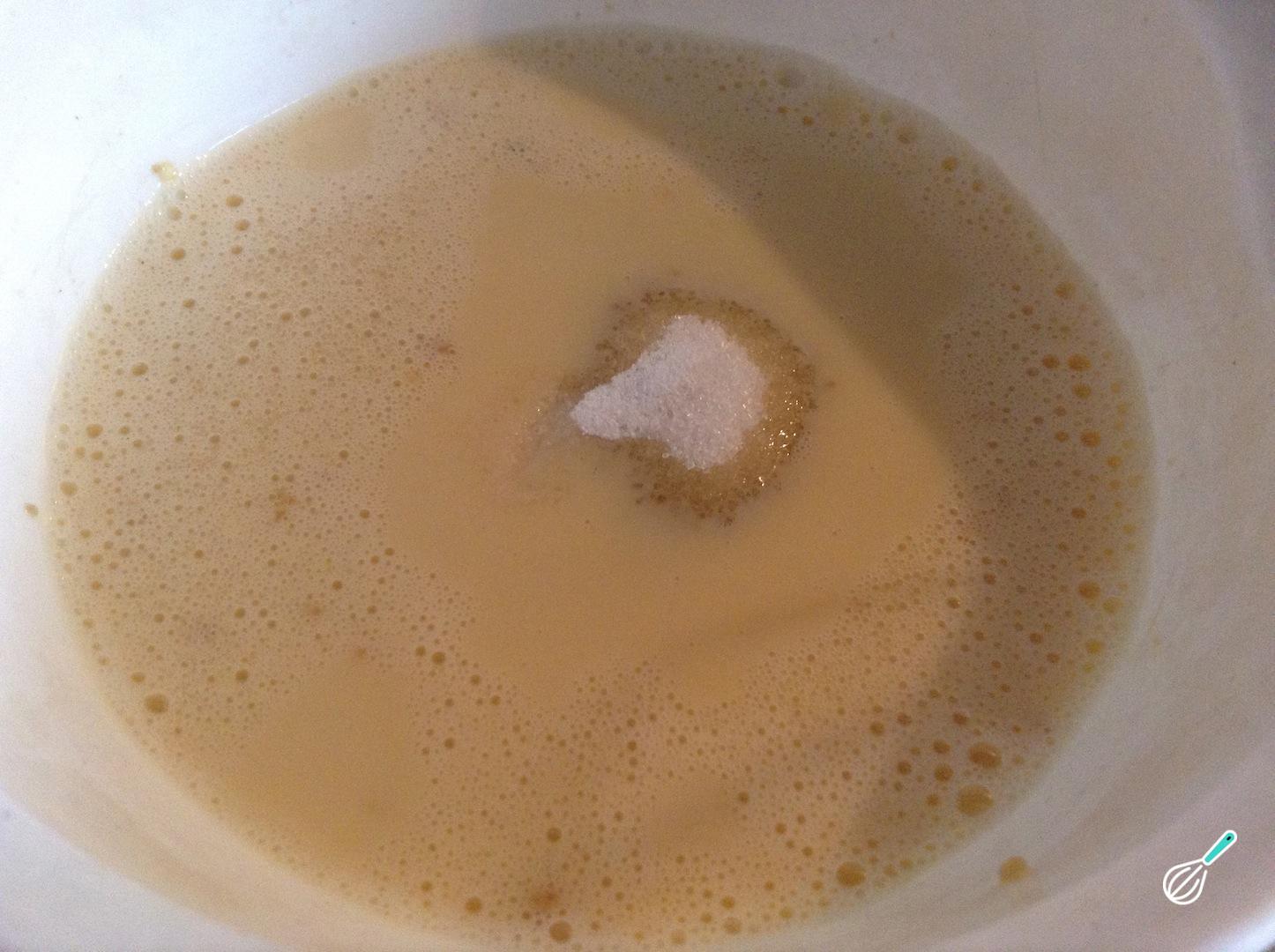 Coloque a quinoa cozida em uma tigela, Junte o leite e adicione os ovos, um a um, sempre mexendo a massa. Adicione o fermento, o açúcar, o azeite de oliva e a essência de baunilha. Misture todos os ingredientes muito bem.
