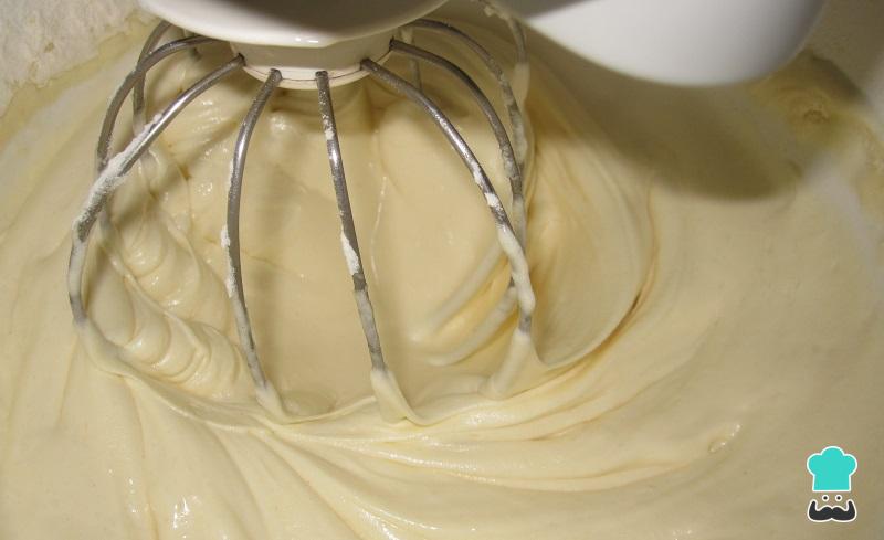 Continue a receita do bolo de reis batendo agora as claras em neve. Adicione-as ao preparado anterior, juntamente com a farinha e o fermento, e volte a bater para misturar bem.