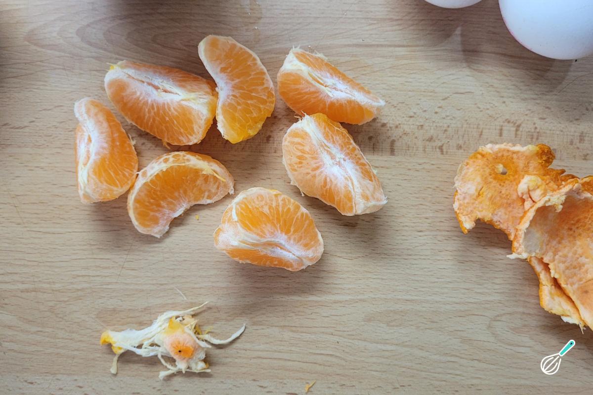 Separe os gomos da tangerina e retire a parte branca do meio, que também vai evitar o amargor.