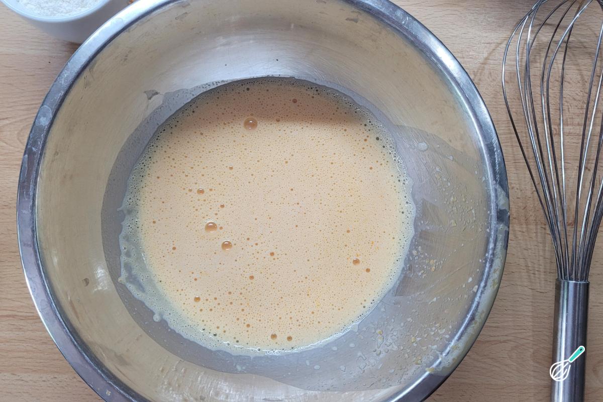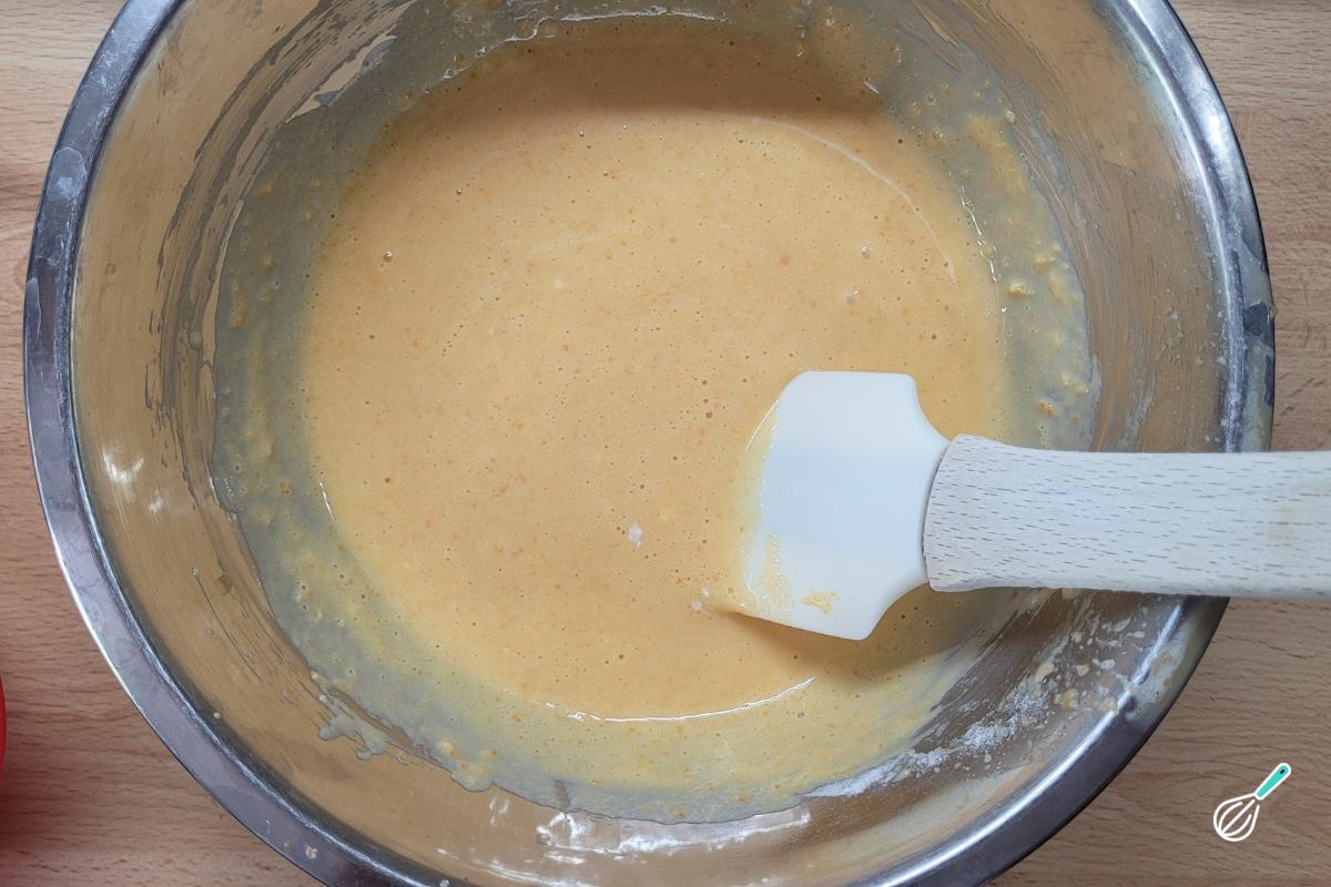 Bata bem até ter uma massa homogênea e sem gruminhos. Transfira para uma tigela.