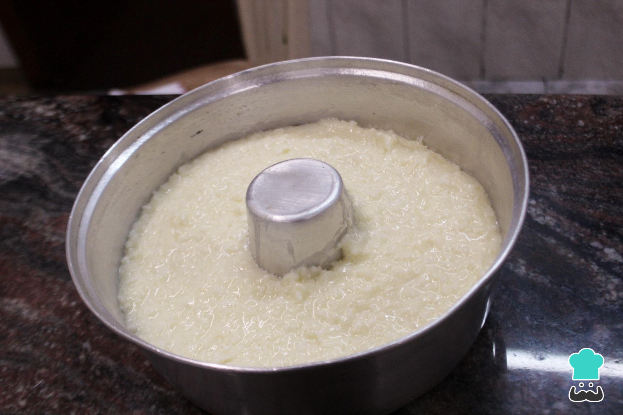 Acrescente o leite de coco e o coco ralado enquanto vai mexendo tudo. Unte uma forma de bolo com leite condensado e coloque a massa. Coloque na geladeira por 2 horas, retire e desenforme seu bolo de tapioca gelado.