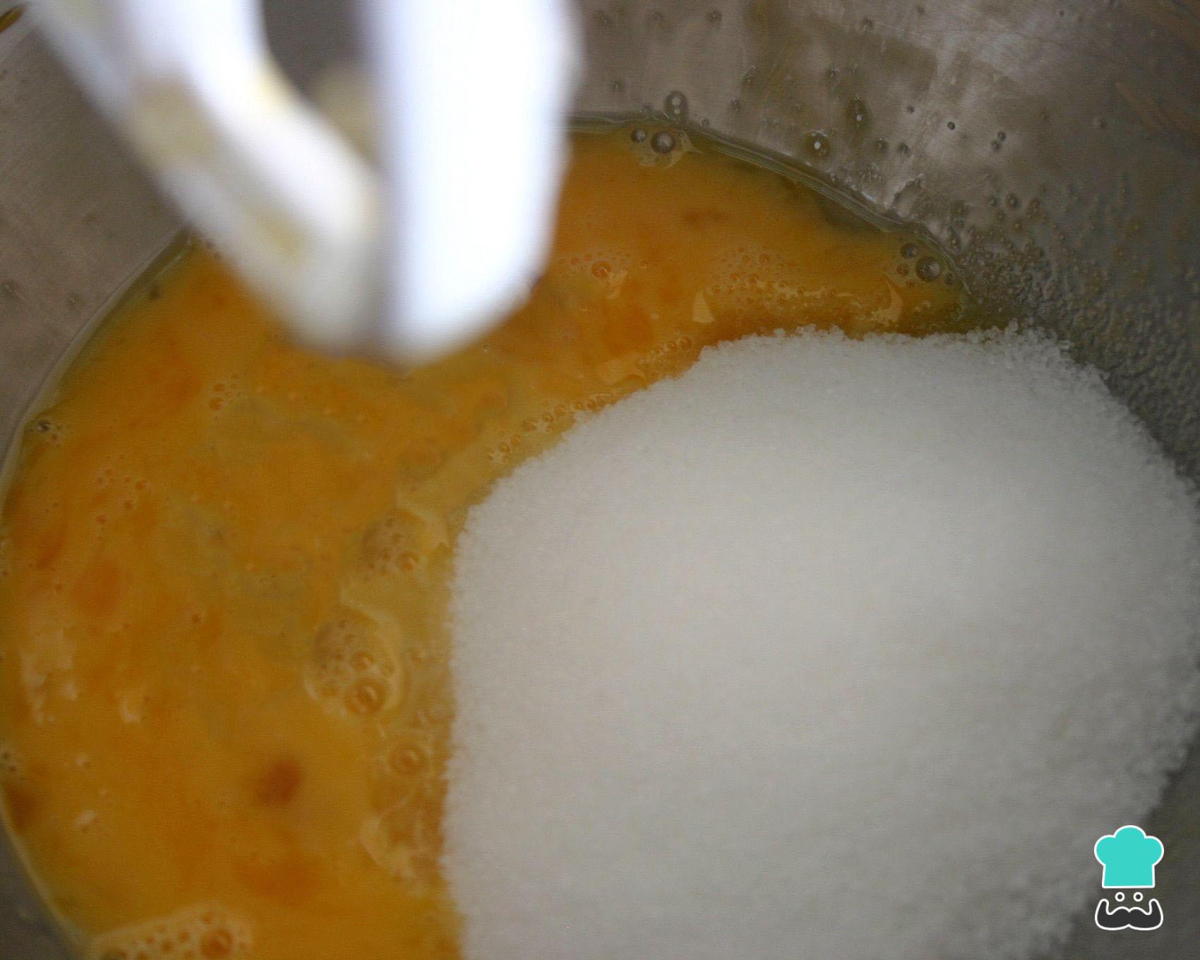 Junte as gemas, o açúcar e a margarina em uma batedeira e bata até formar um creme. Acrescente o sal e a essência de baunilha e bata mais um pouco.