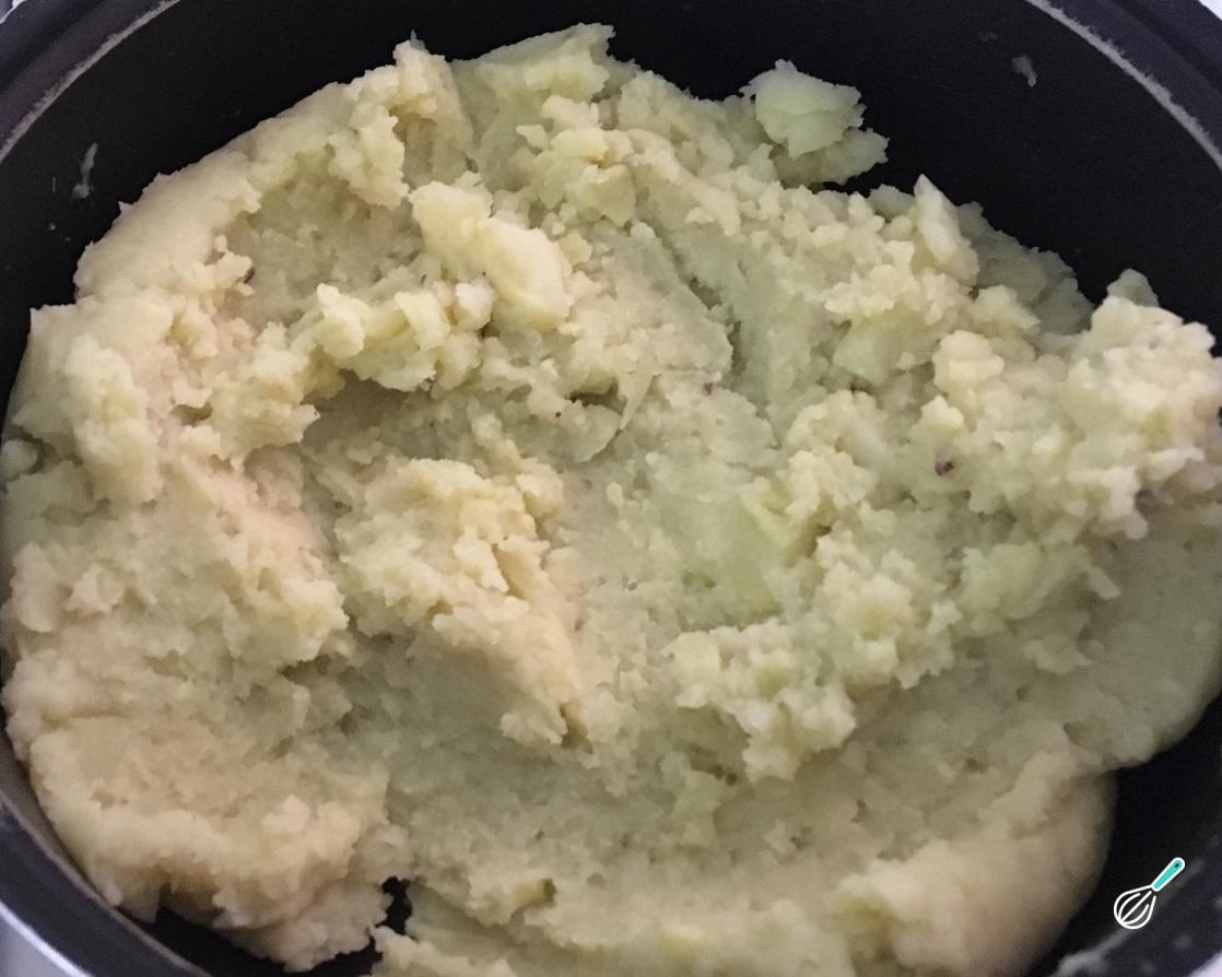 Primeiro descasque a batata doce e cozinhe numa panela com água no fogo médio até ficar macia. De seguida, retire, escorra a água e esmague a batata até virar um puré.